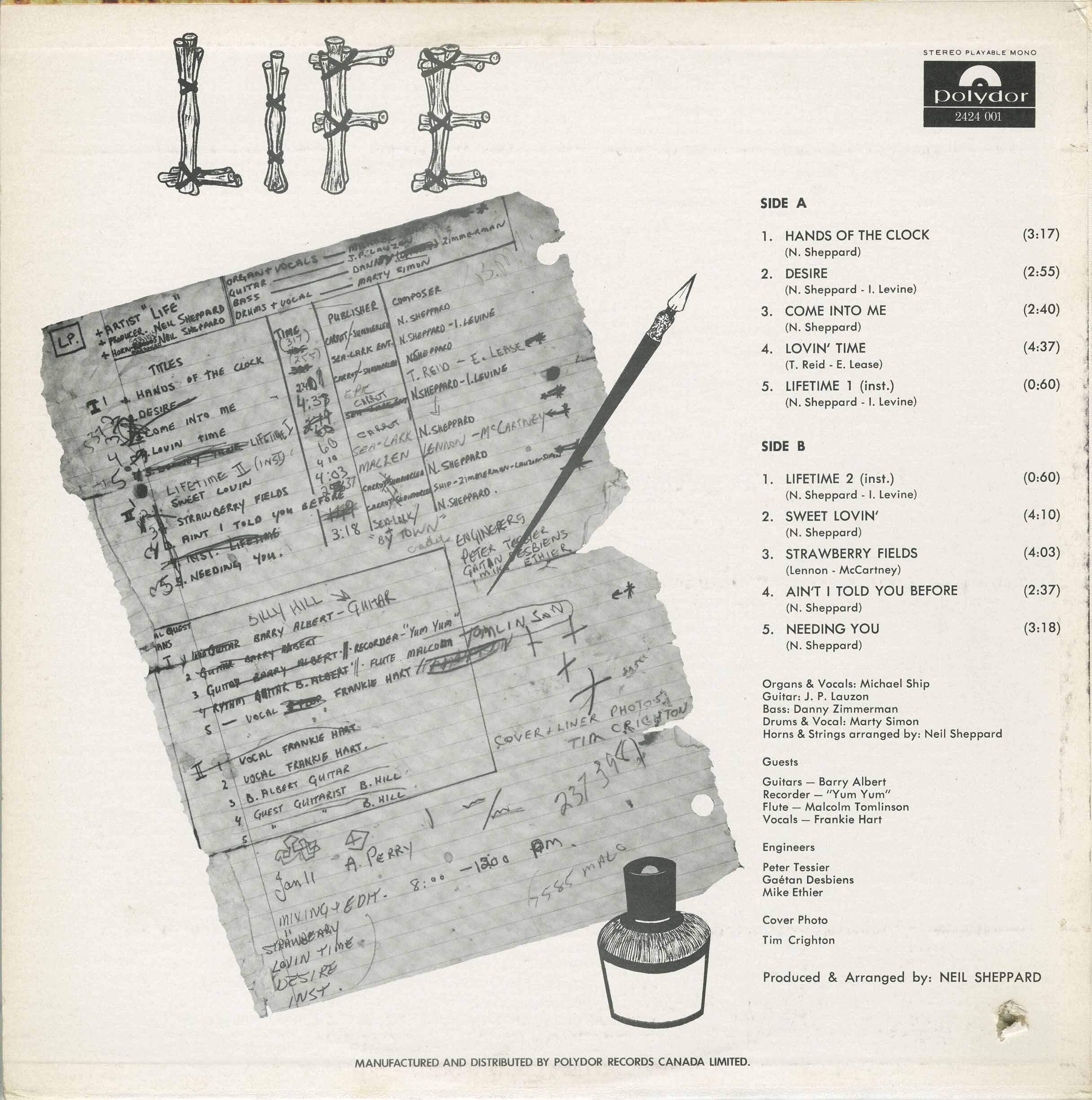 In 1969, Hart lent her talents to Life, the ambitious studio project of Neil Sheppard. Recorded at Montreal’s Stereo Sound Studios and Andre Perry’s groundbreaking eight-track setup, Life's lone LP fused psych, funk, and jazz with elaborate production values. Hart appears as a featured vocalist on the record, which has since become a cult favorite for its imaginative arrangements and period-defining sound. The album included contributions from Michael Ship, J.P. Lauzon, Barry Albert, and future Santana drummer Graham Lear.