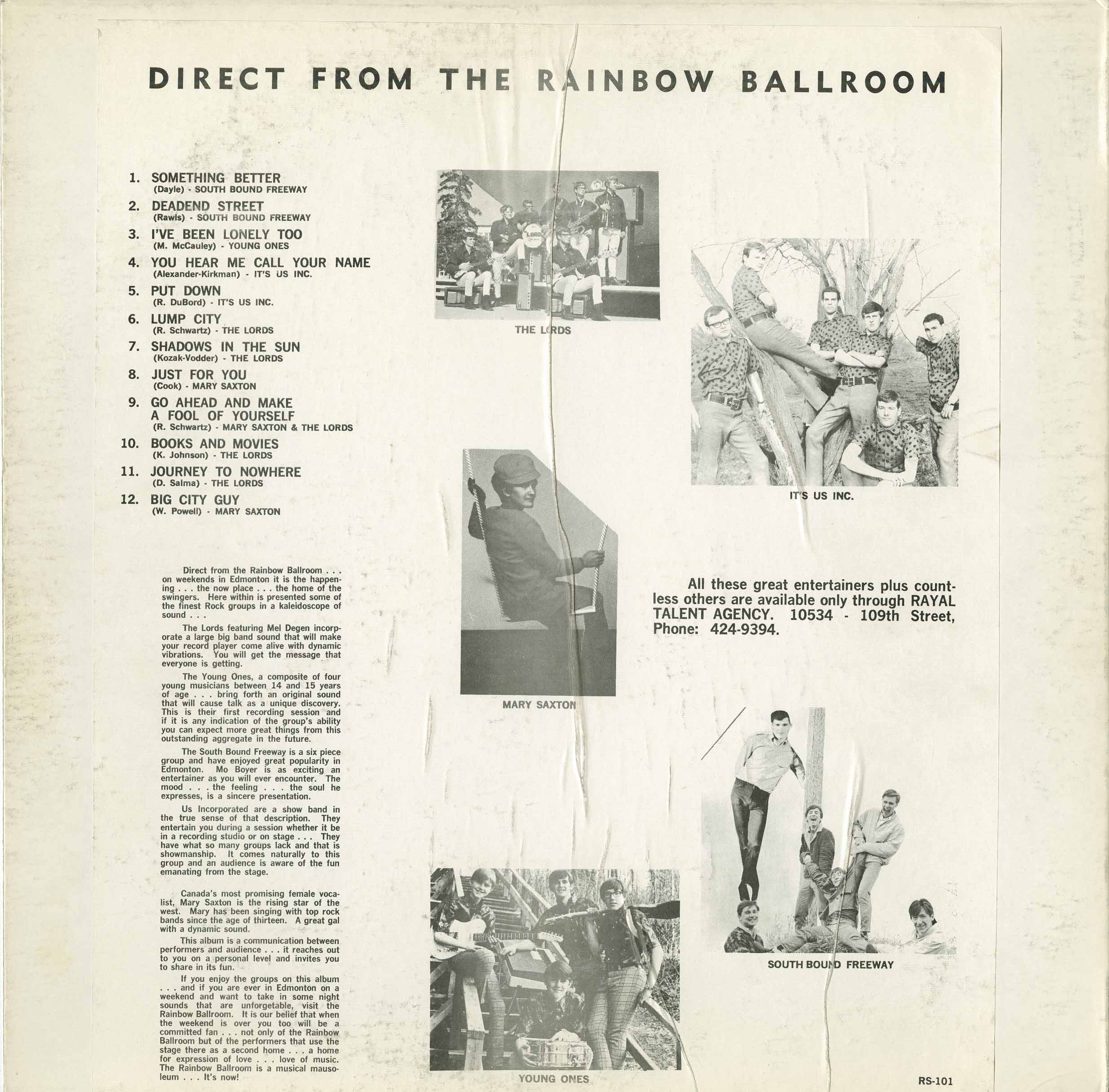 The King Beezz ended up signed to another label by 1967, but Mary and the Lords, given the minor local success of their respective singles, were tapped by their label to appear on a mock-live album titled "Direct.. From The.. Rainbow Ballroom." Other local groups that were featured were the Southbound Freeway, The Young Ones and Its Us Inc.