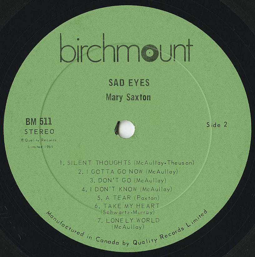 | Saxton, Mary | Silent Thoughts (McAulley-Theuson) | Sad Eyes | 02:41 | |