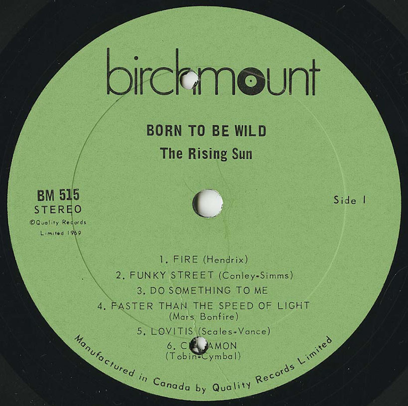 1968 would also see her briefly join The Rising Sun. The Rising Sun were mainly a studio shadow band employed by Birchmount Records and was an amalgamation of a number of notable Edmonton groups. These included members of Southbound Freeway, The Nomads, The Rebels, The Lords and Barry Allen. They would release an album titled "Born To Be Wild" (obviously to capitalize on the recent success of the Steppenwolf song on both sides of the border), which featured the Steppenwolf song as well as a number of well performed covers; including Jimi Hendrix' Fire.