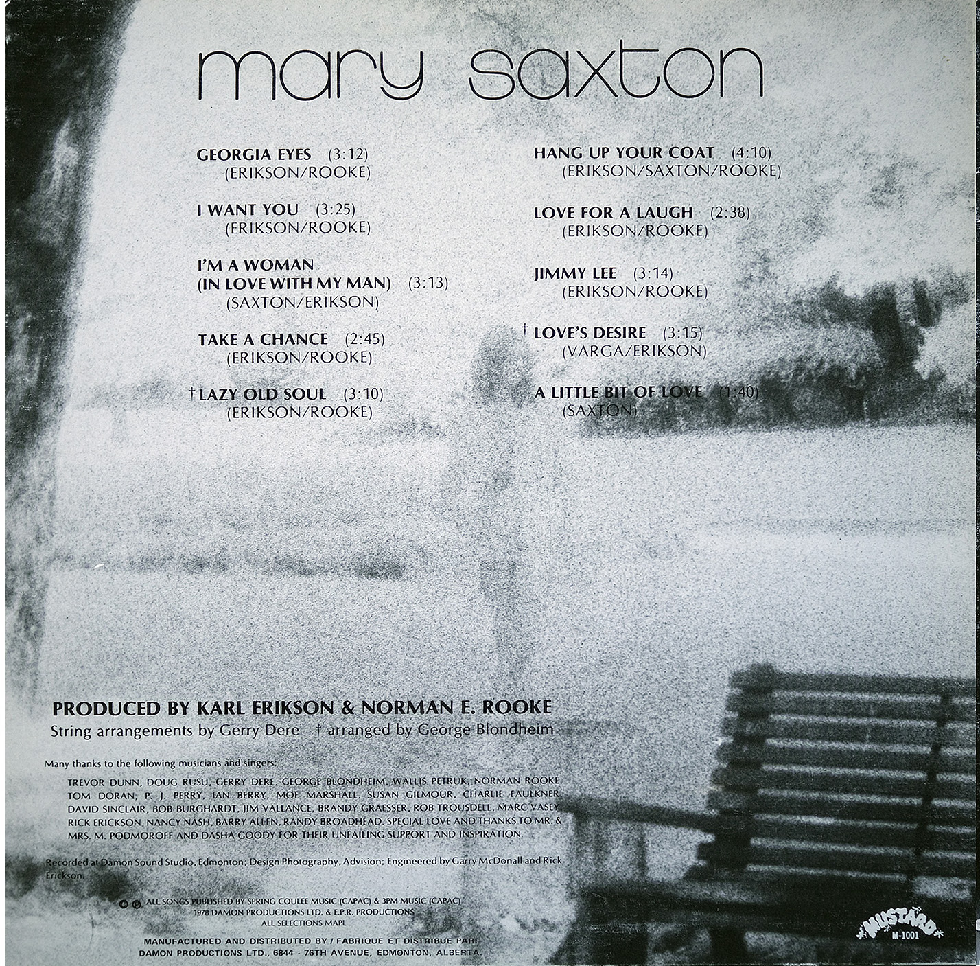 Edmonton of the mid-20th century was a breeding ground for musical talent. Like many large and small cities across the country and the world, the birth of rock & roll in the 1950's and mainstream explosion of the early 1960's with bands like The Beatles, The Rolling Stones etc., was the catalyst for many young people to get into music themselves; playing instruments, singing and writing songs. Mary Saxton was one such young girl.