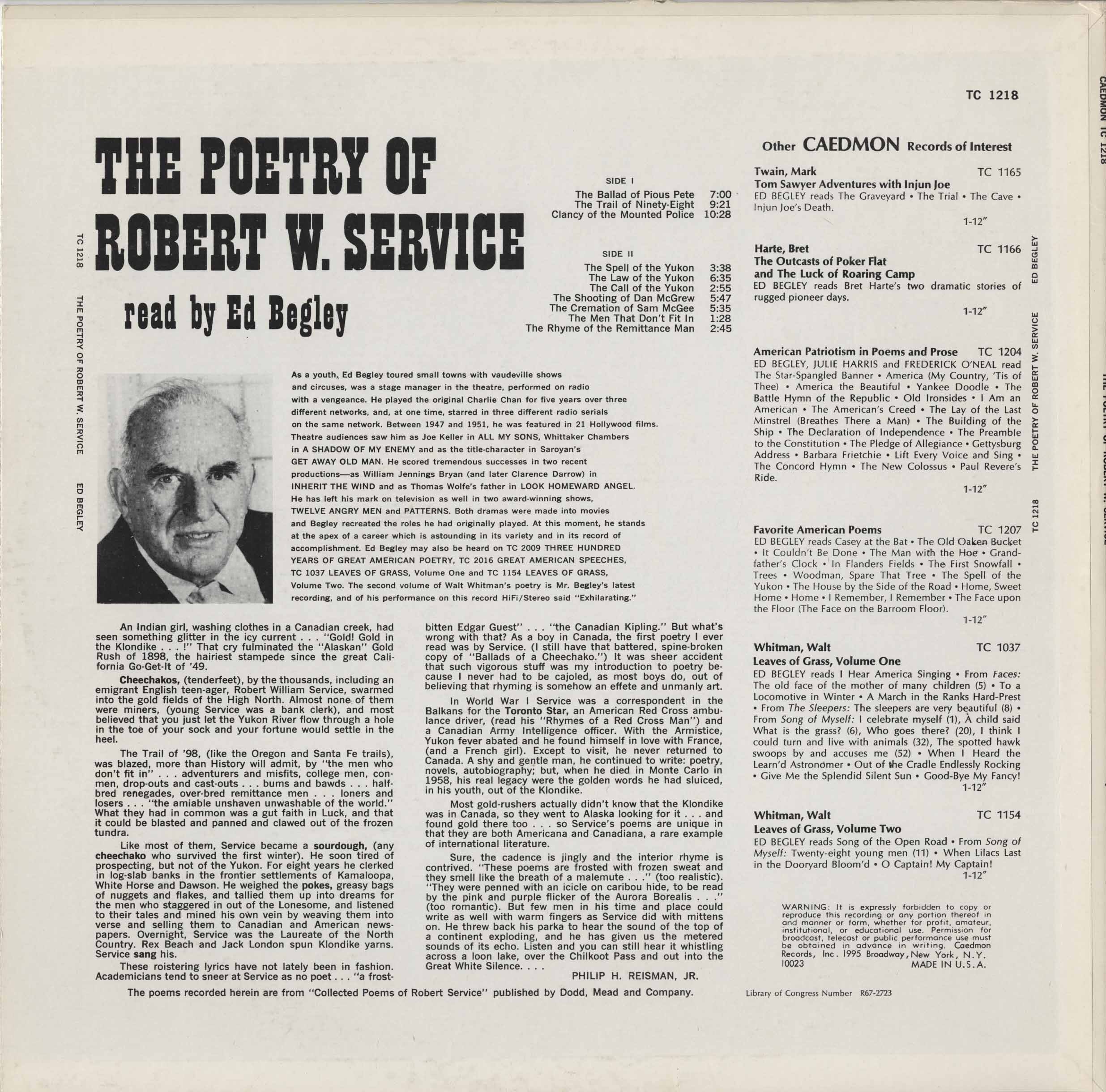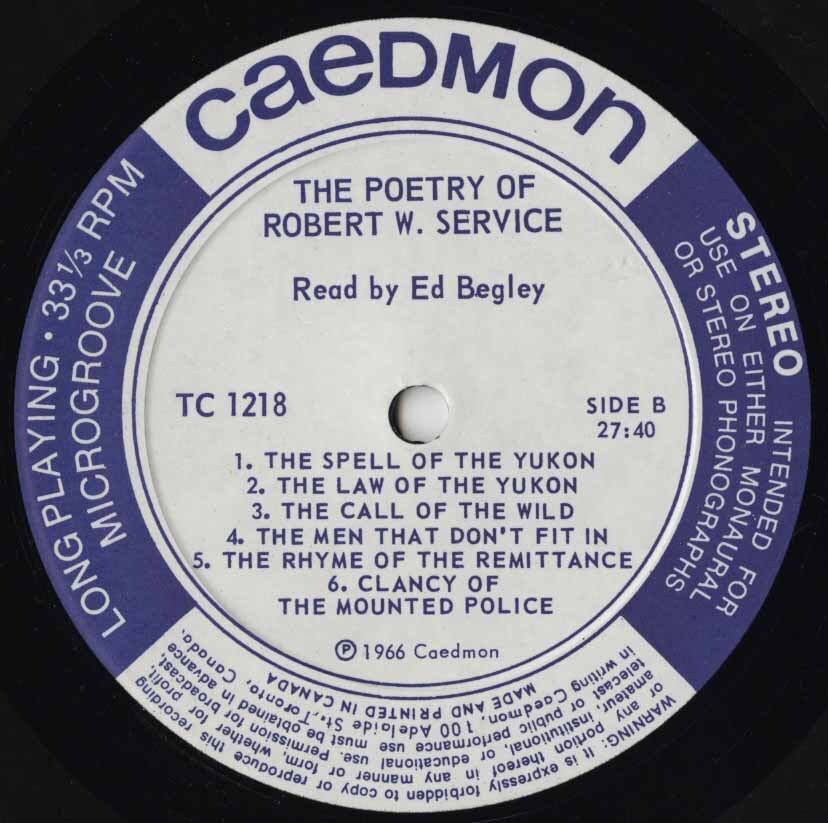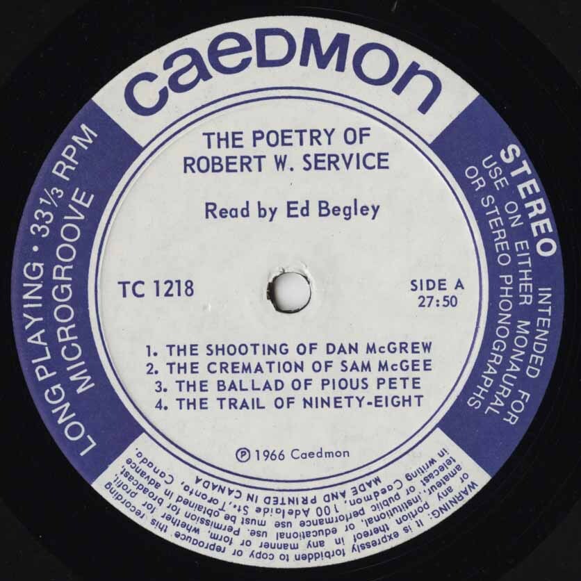 Recites "The Shooting of Dan McGrew" and ten other famous Poems