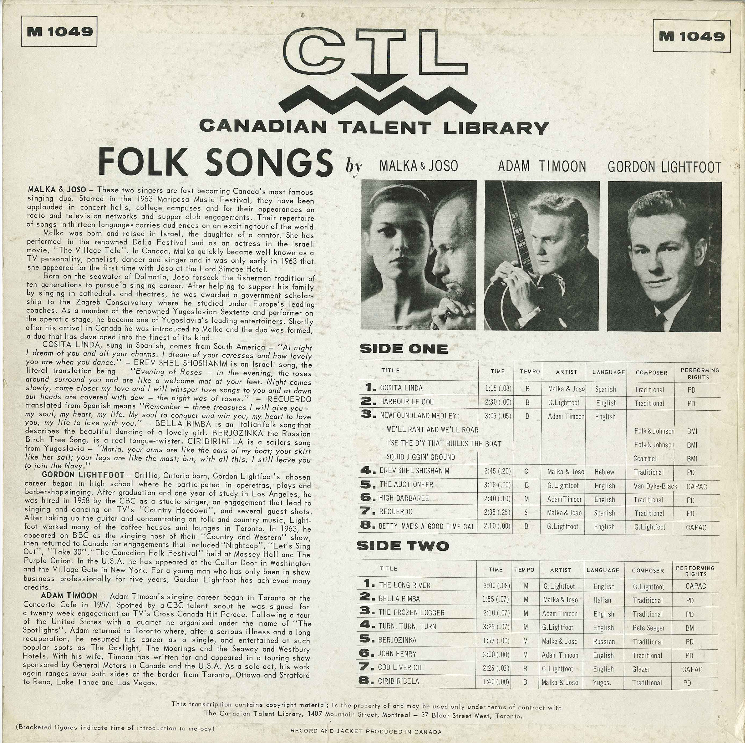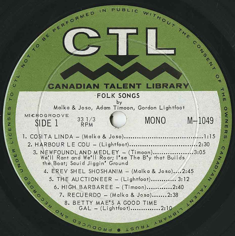 Folk Songs by Malka & Joso with Adam Timoon & Gordon Lightfoot comp