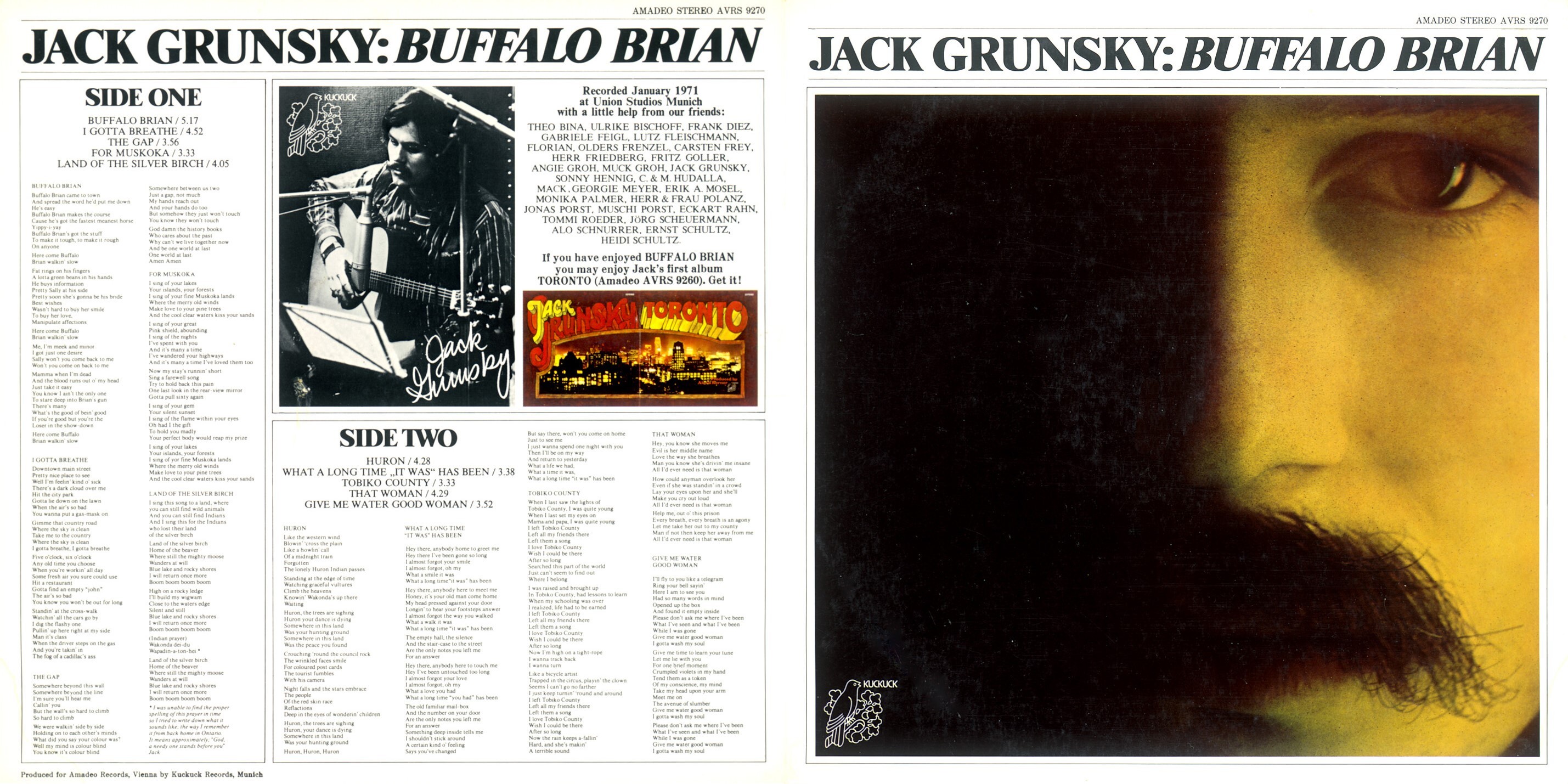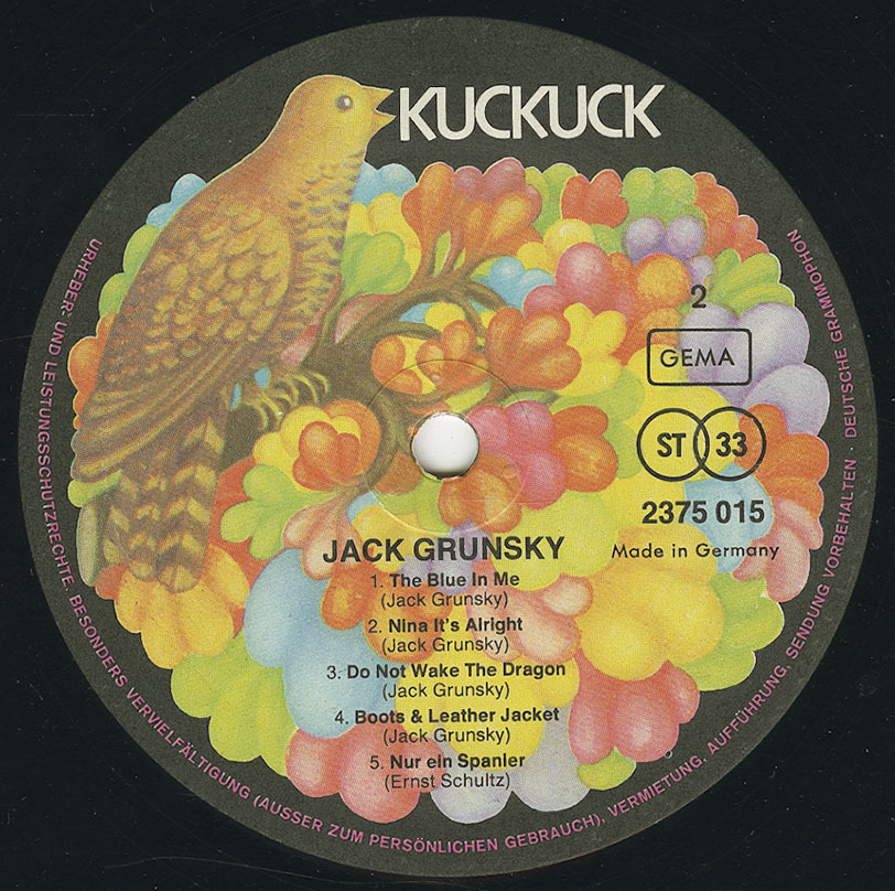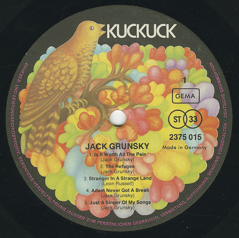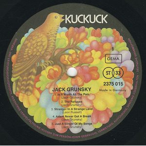 Jack’s career expanded when he signed with Germany's progressive label, Kuckuck Records, where he released three more albums: Buffalo Brian, Newborn Man, and Jack Grunsky. In 1974, he released Icarus, a double compilation album featuring live performances. Throughout his time in Europe, Jack toured extensively, performing in major concert halls, festivals, and on radio and TV. He also hosted a weekly radio show, Folk With Jack, for Austria's ORF, sharing his passion for folk music.
