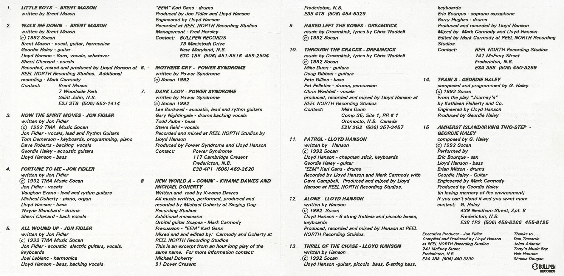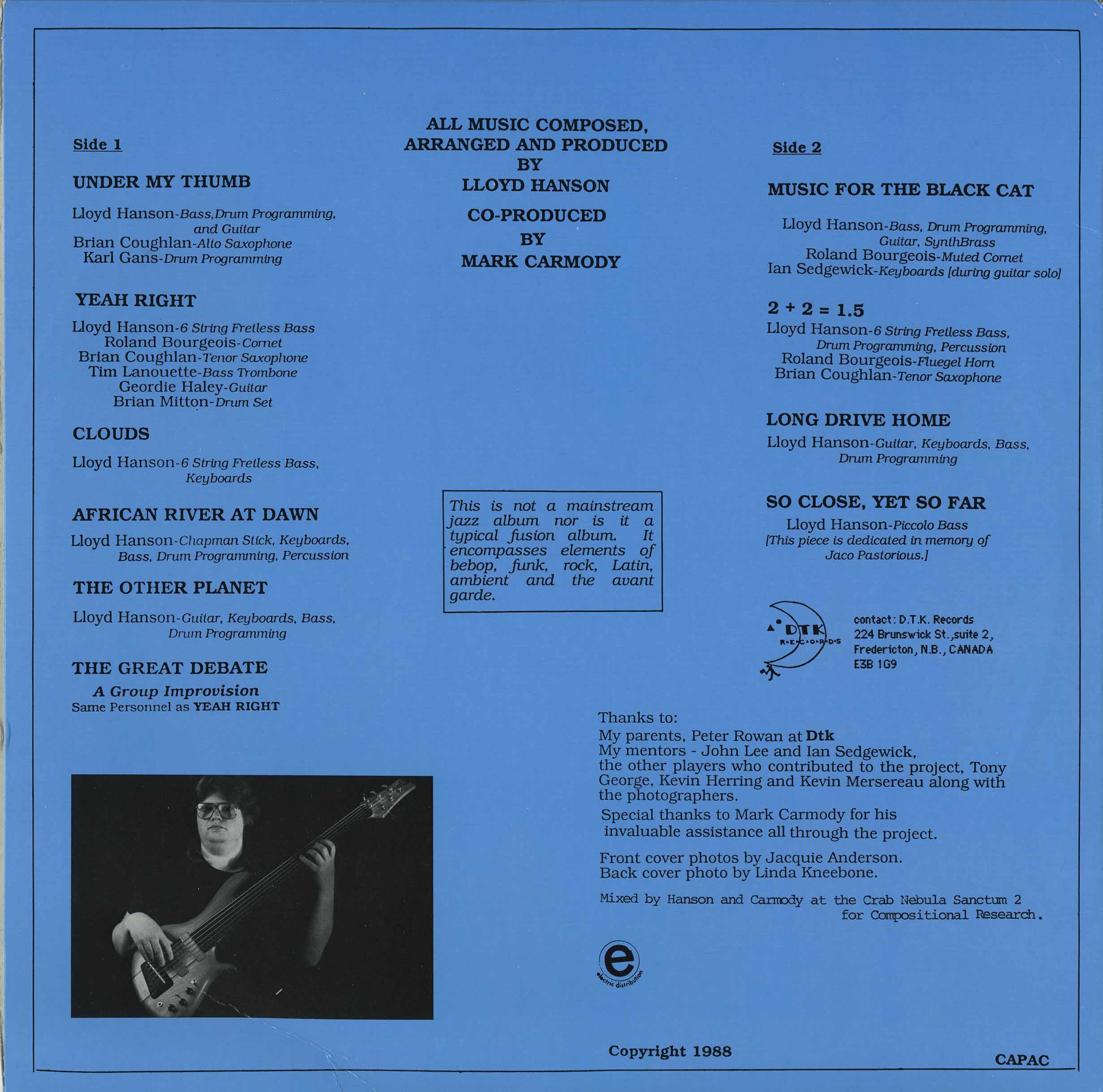 In 1993, Hanson released A Different Drummer under the collaborative project Lloyd Hanson’s Thrash Peninsula, featuring Fredericton-based virtuosos such as: