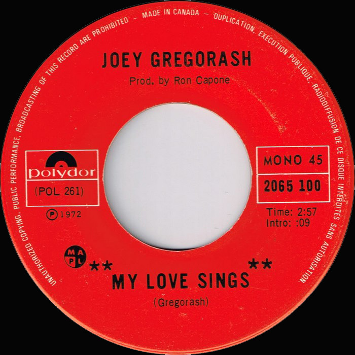 After his time with The Mongrels and Walrus, Joey Gregorash took the leap into a solo career when he signed with Polydor Records in late 1969. His first recording session took place at Sound 80 Studios in Minneapolis, where he worked with producer Bob Burns. The result was two singles: “Stay” and “Tomorrow, Tomorrow”, which did not appear on any album but helped generate enough interest for Polydor to offer Joey the opportunity to record a full LP.