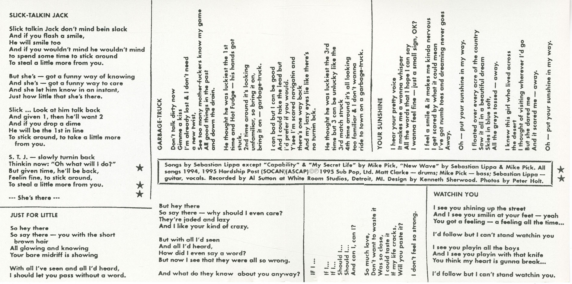 By late 1994, Hardship Post had caught the attention of Sub Pop Records, the influential Seattle label famous for launching Nirvana and Soundgarden. Signing with Sub Pop, they released their only full-length album, Somebody Spoke, in 1995. Recorded by Al Sutton at White Room Studios in Detroit, the album captured the band’s knack for catchy, emotionally charged songwriting. Somebody Spoke earned Hardship Post a Juno Award nomination for Best Alternative Album in 1996, marking another major milestone.