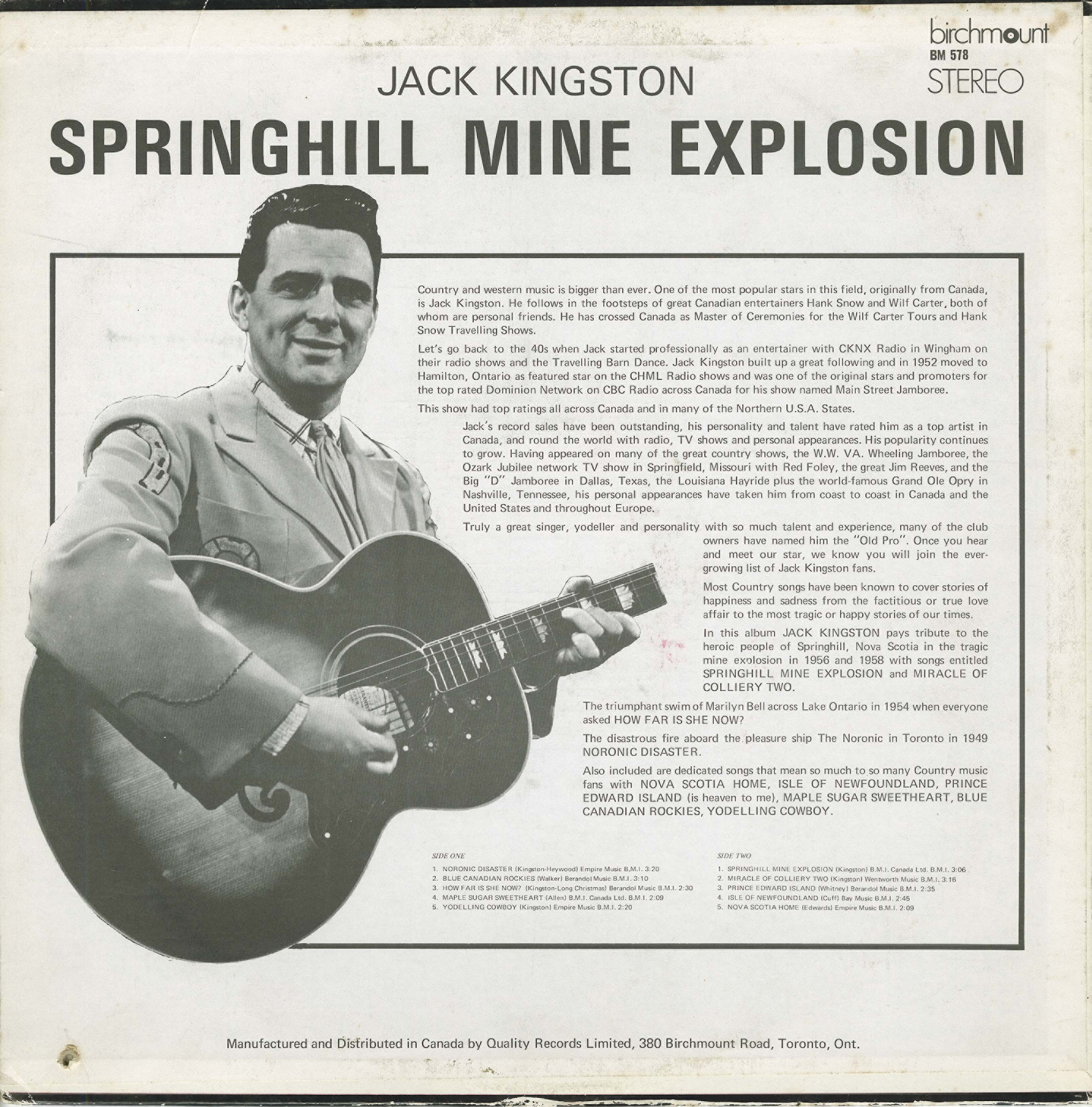 | Kingston, Jack | Springhill Mine Explosion | Springhill Mine Explosion | 03:00 | |