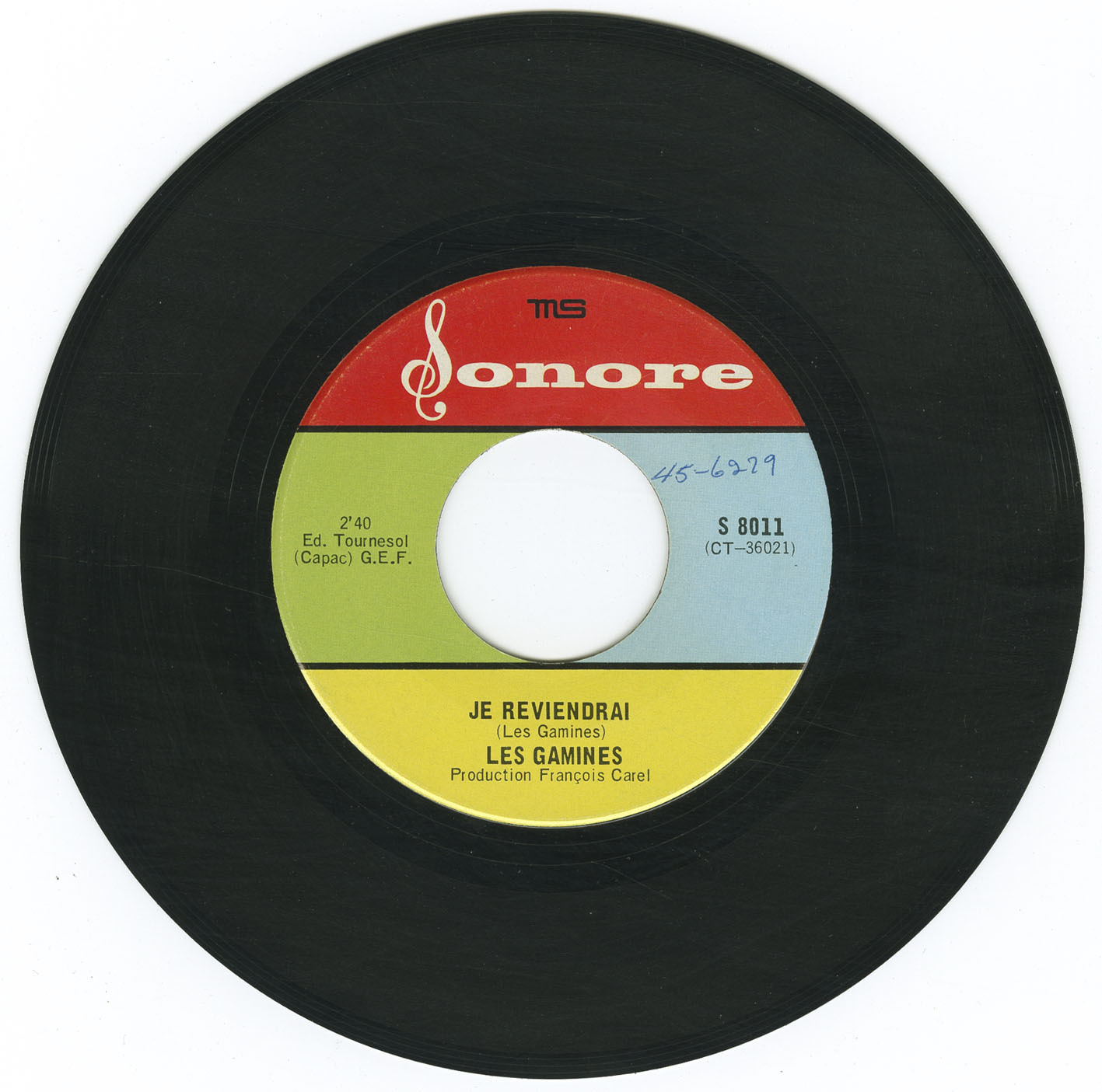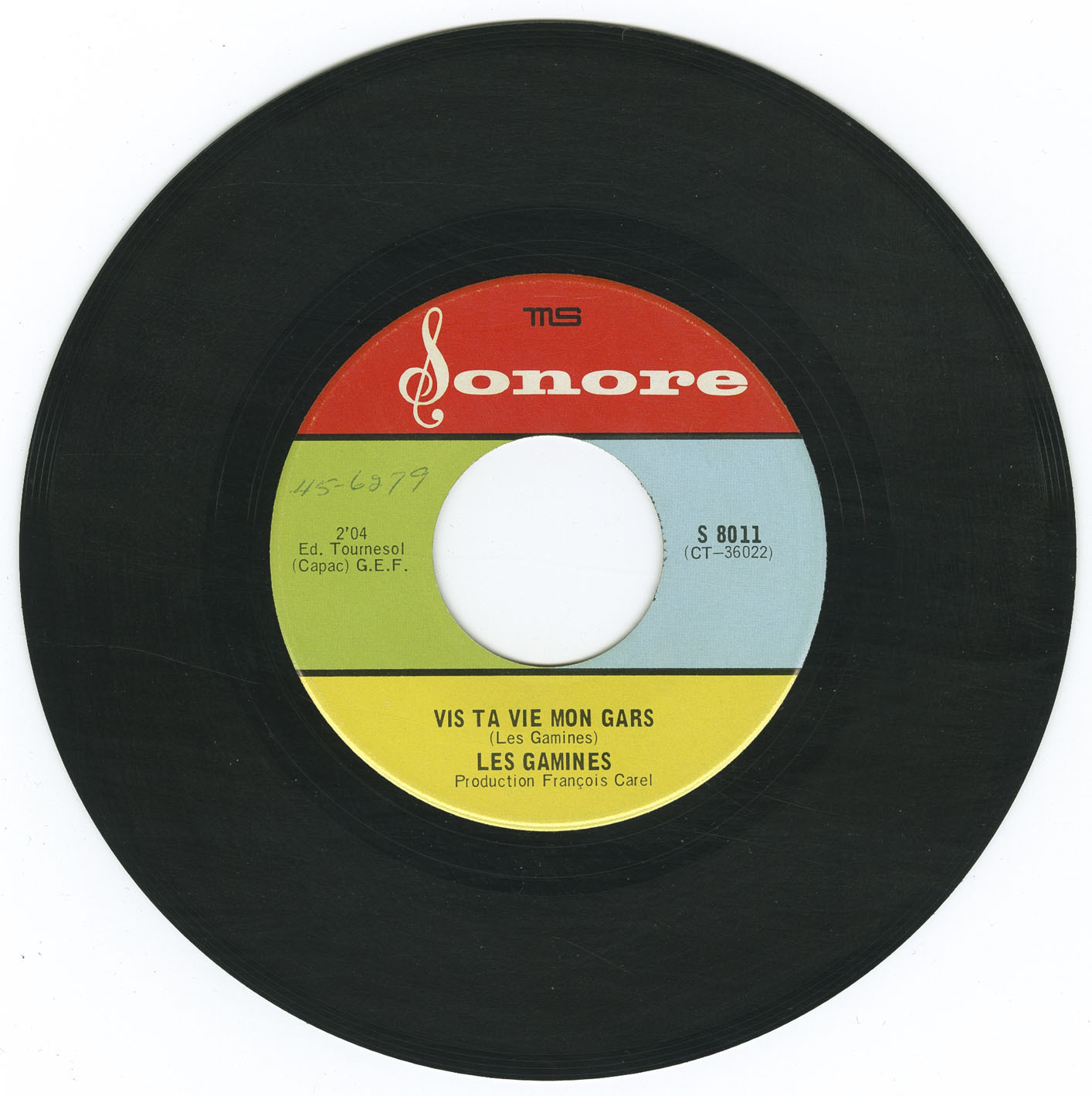 Among collectors, several 45s in the garage-psych vein are especially prized, including those by Les Tallmud, Le Pouvoir des Fleurs, Les Dabsters, Les Gamines (one of the province’s rare all-female garage groups), and Les Loups Blancs (Je sais que tu mens b/w Sylvianne). These discs stand out as the most elusive and sought-after titles in Sonore’s short but memorable run. The Corvettes single also remains scarce and difficult to properly catalogue, while the reason for the missing S-8013 is still unknown.