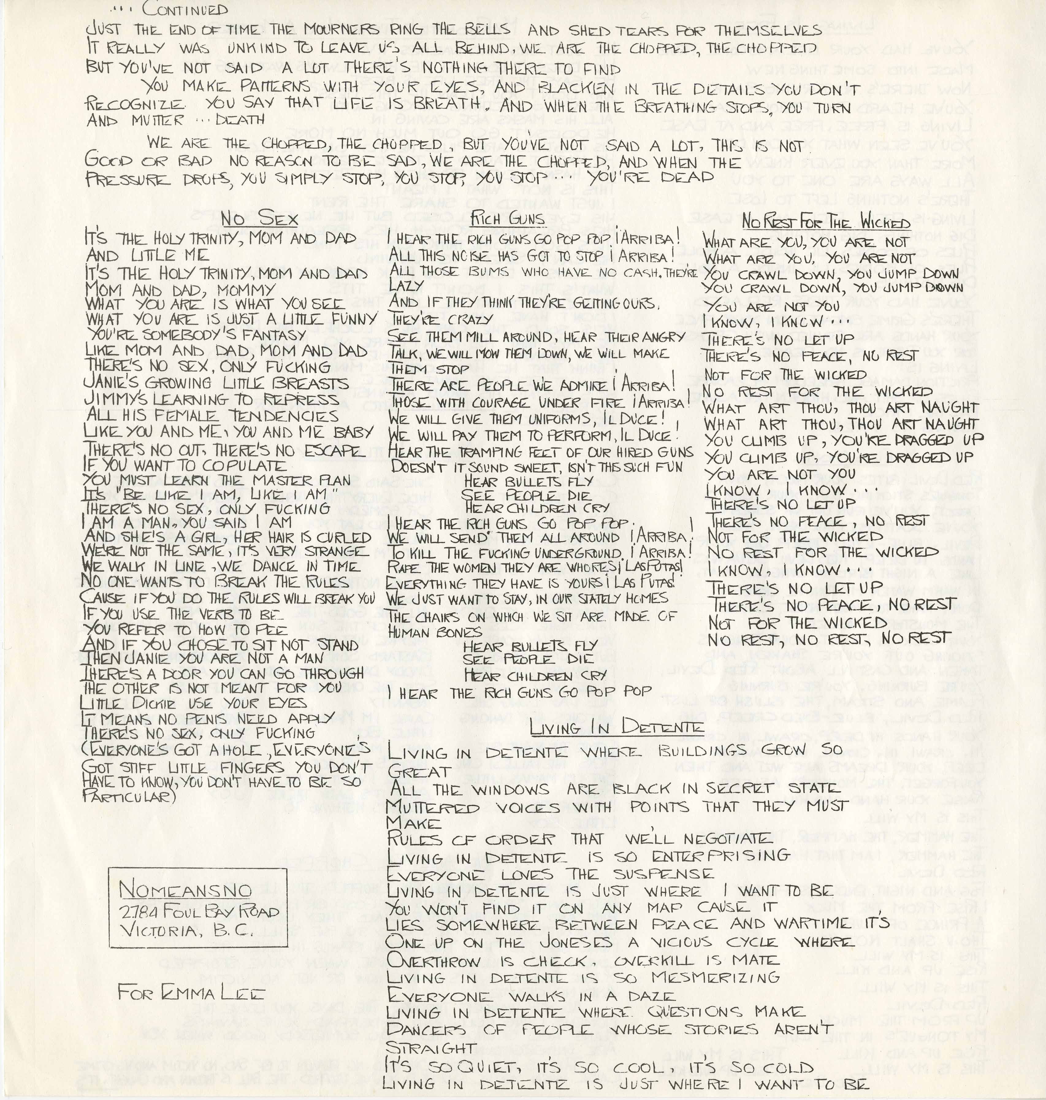 Four decades later, this body of work still burns with urgency. These recordings are more than relics of a scene; they’re a testament to Vancouver’s stubborn independence and its outsized contribution to punk’s global story. This was a movement bloodied by indifference, hostile landlords, and police crackdowns — but never bowed.