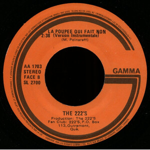 222's - La poupee qui fait non (She's a Doll) b/w La poupee qui fait non (version instrumentale)