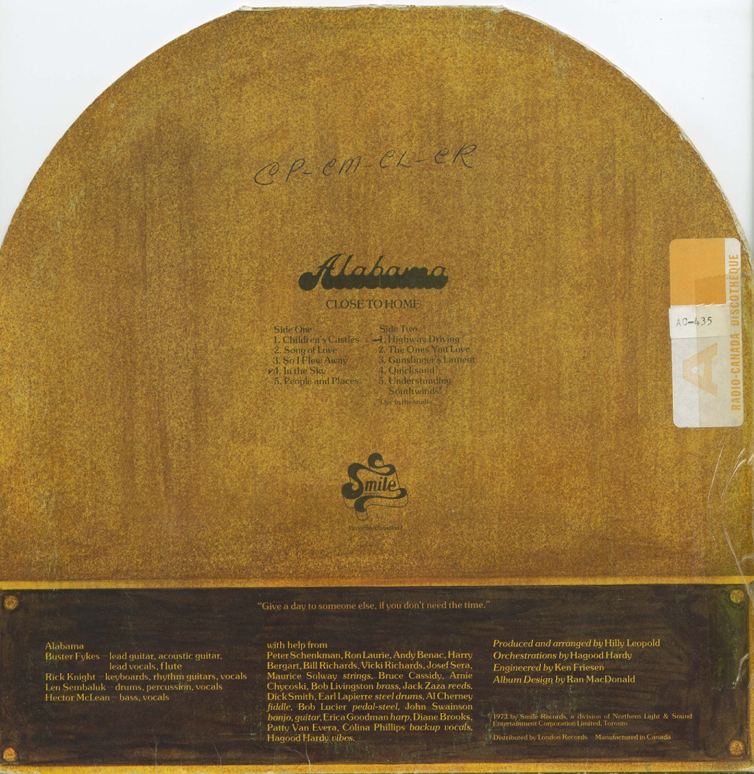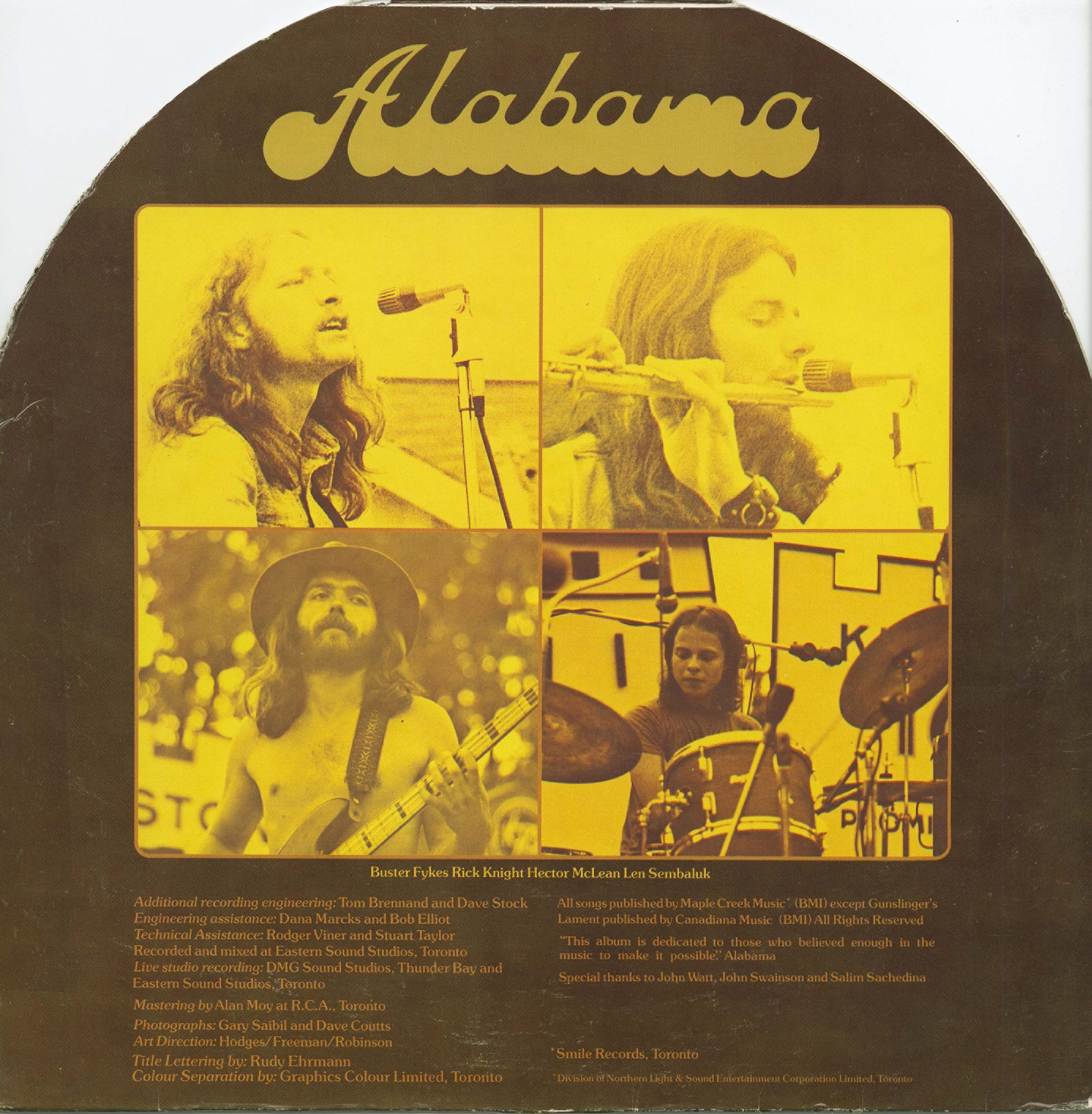 Alabama was a Toronto based band formed ca 1972 by Buster Fykes, Hector McLean, Rick Knight, and Len Sembaluk. The band performed a mix of progressive rock, cajun, country and soul music; with 8 originals written by Fykes and Knight. Both Fykes and Knight were born in Alabama (presumably the inspiration behind the band’s name) and migrated to Ontario, where they settled permanently.