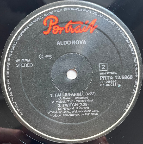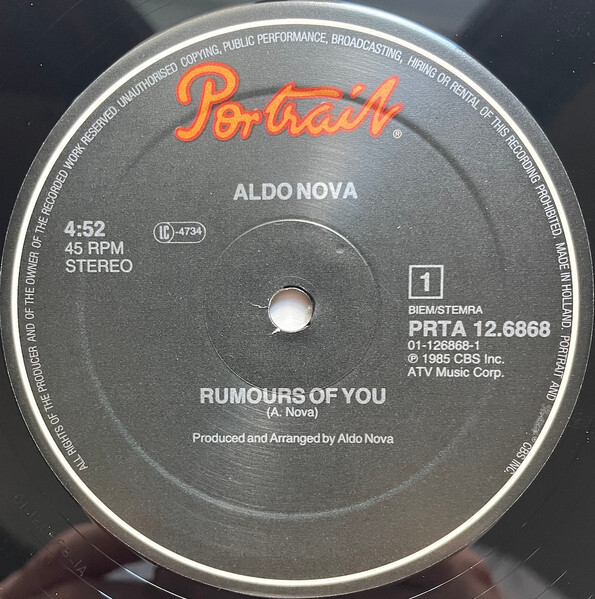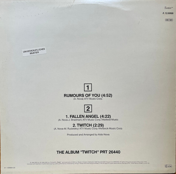 Aldo Nova - Rumours of You b/w Fallen Angel / Twitch