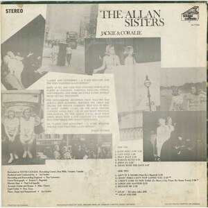 The Allan Sisters—Jackie and Coralie Allan—were born and raised in Edmonton, Alberta, where their musical journey began in childhood. Jackie was singing on stage by the age of seven, with Coralie soon joining her. By their early teens the sisters were already local performers, appearing at school events, community shows, and eventually with a short-lived vocal group called the Four Tops (no relation to the famous Motown act). When that group folded, Jackie and Coralie returned to working as the Allan Sisters, building a loyal following in Alberta before setting their sights on bigger things.