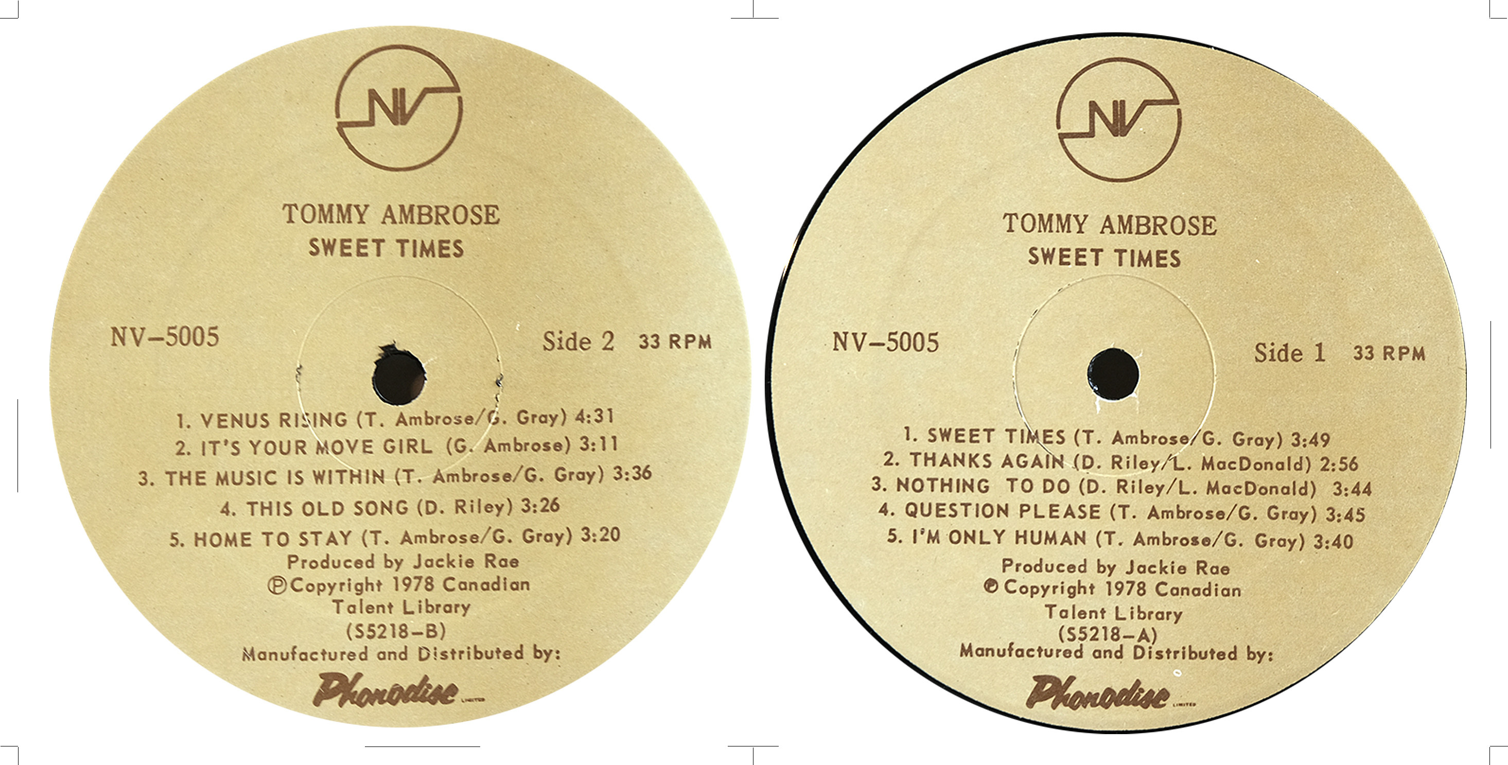 In 1971, Ambrose recorded the single Just Like a Man b/w That’s the Way It Was for CBC Radio Canada (LM 106). Produced by Dave Bird and engineered by Ian Jacobson at Studio 4-Sound in Toronto, it was released as part of CBC’s LM series of broadcast-only promotional 45s.