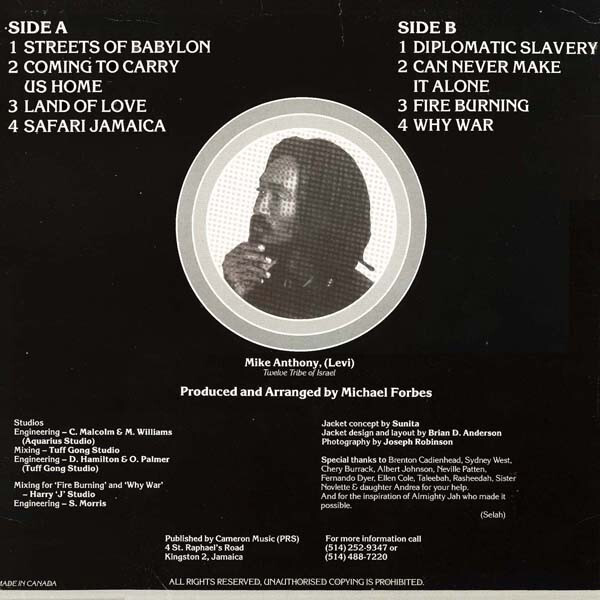Jah Mike Anthony AKA Michael Forbes was born in Kingston, Jamaica in 1952. He grew up among some of Reggae's great legends having lived at 139 Orange street, a place we called Big Yard in those times. Not far from there was Beverley's Studio at the corner of Orange and North streets where some top artists such as Jimmy Cliff, Desmond Dekker and the Aces, The Melodians and even the Great Bob Marley often recorded.