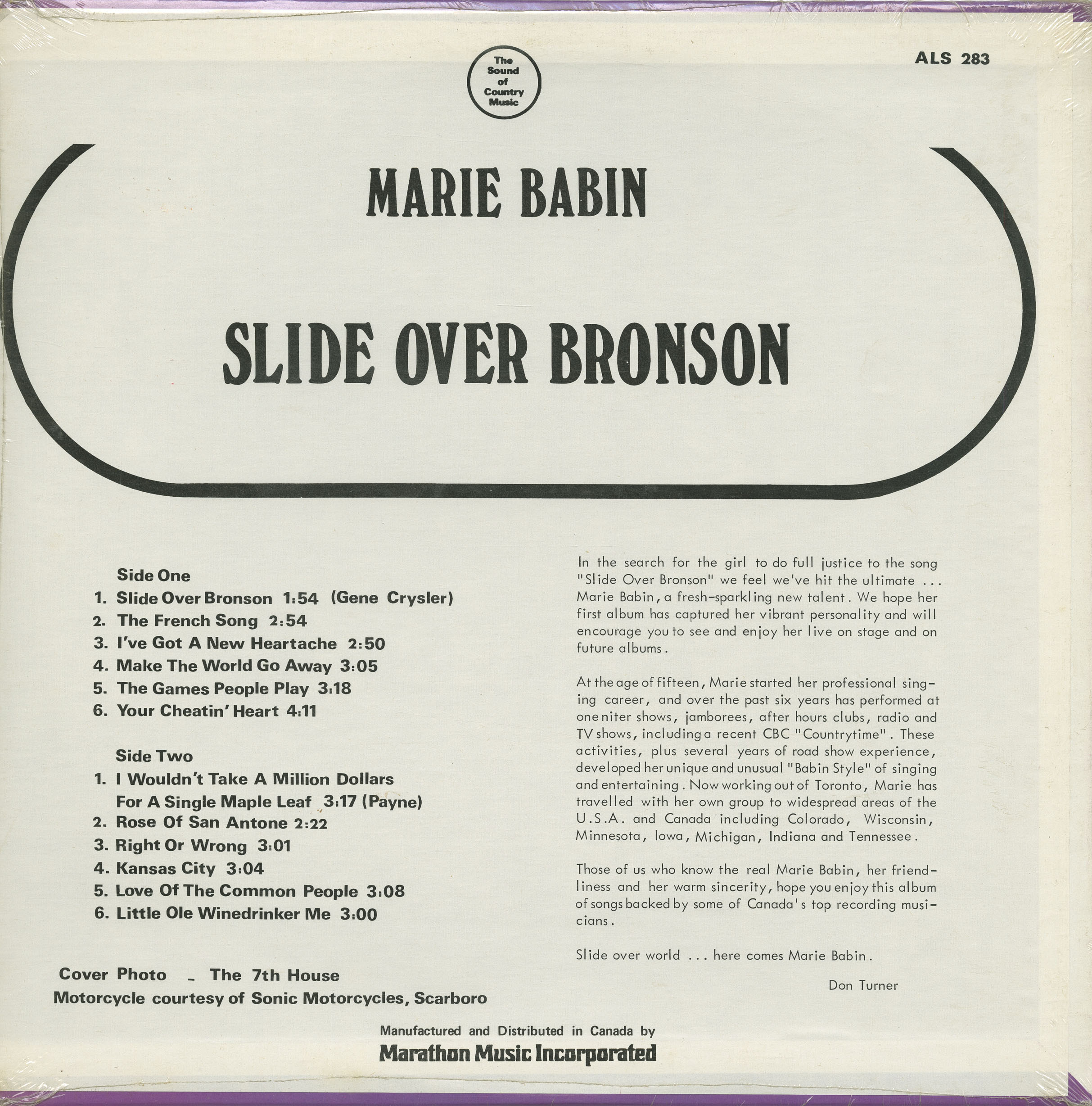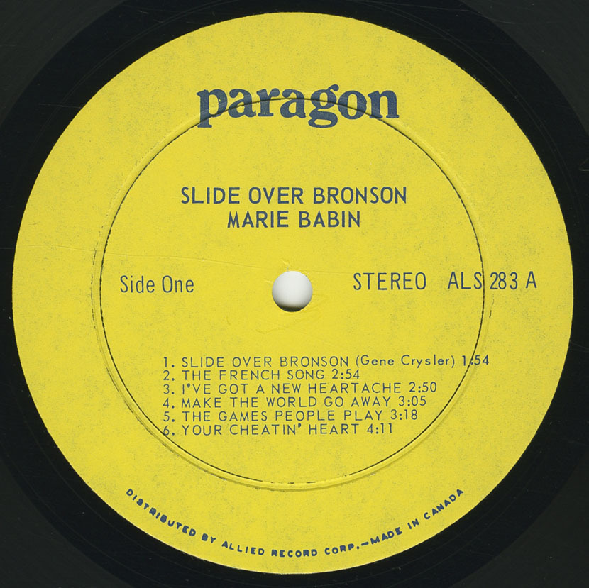 Those of us who know the real Marie Babin, her friendliness and her warm sincerity, hope you enjoy this album of songs backed by some of Canada’s top recording musicians.