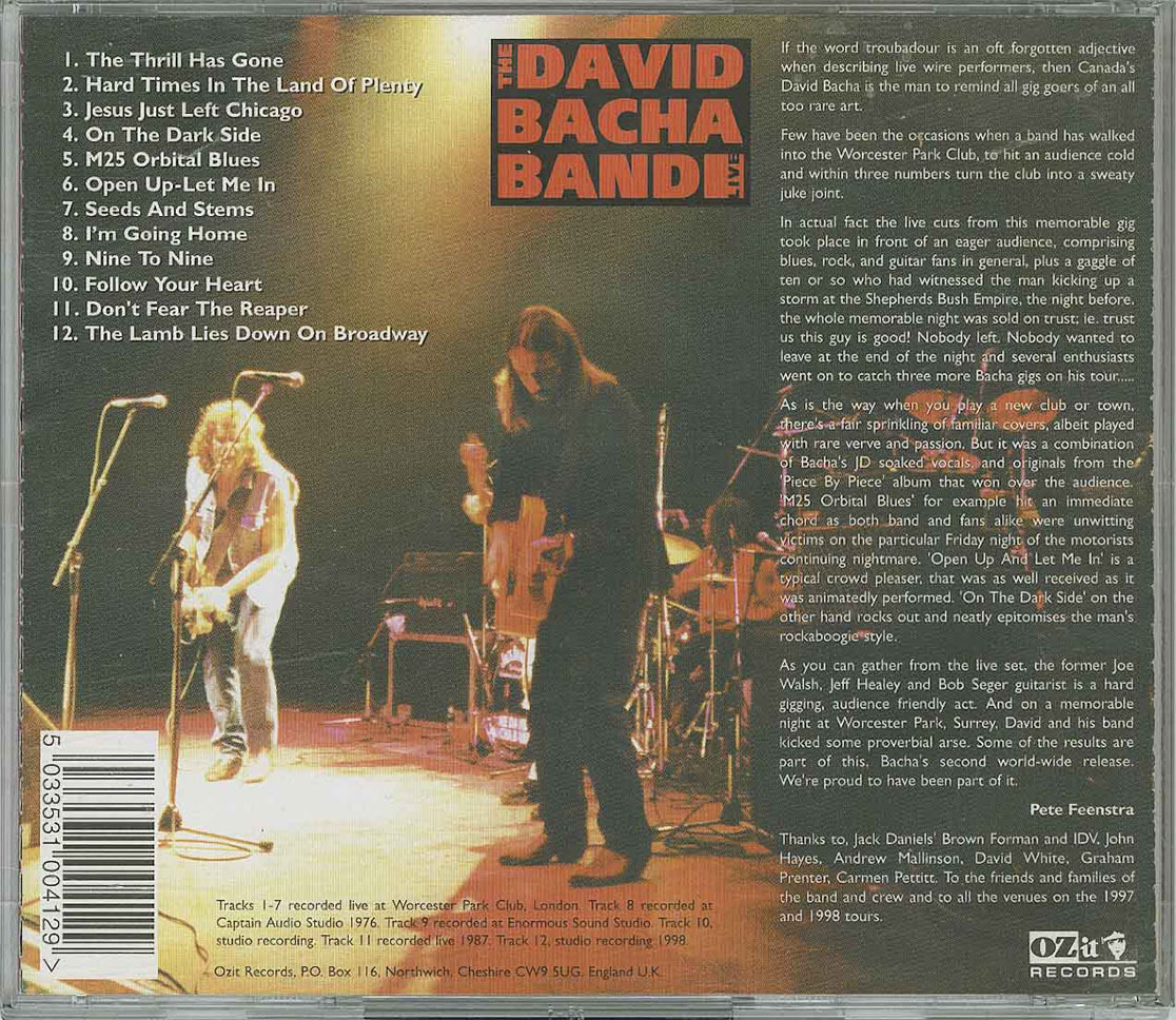 The David Bacha Band has performed live in Europe (including the UK) for the first time playing a 21 date tour during November and December, 1997.