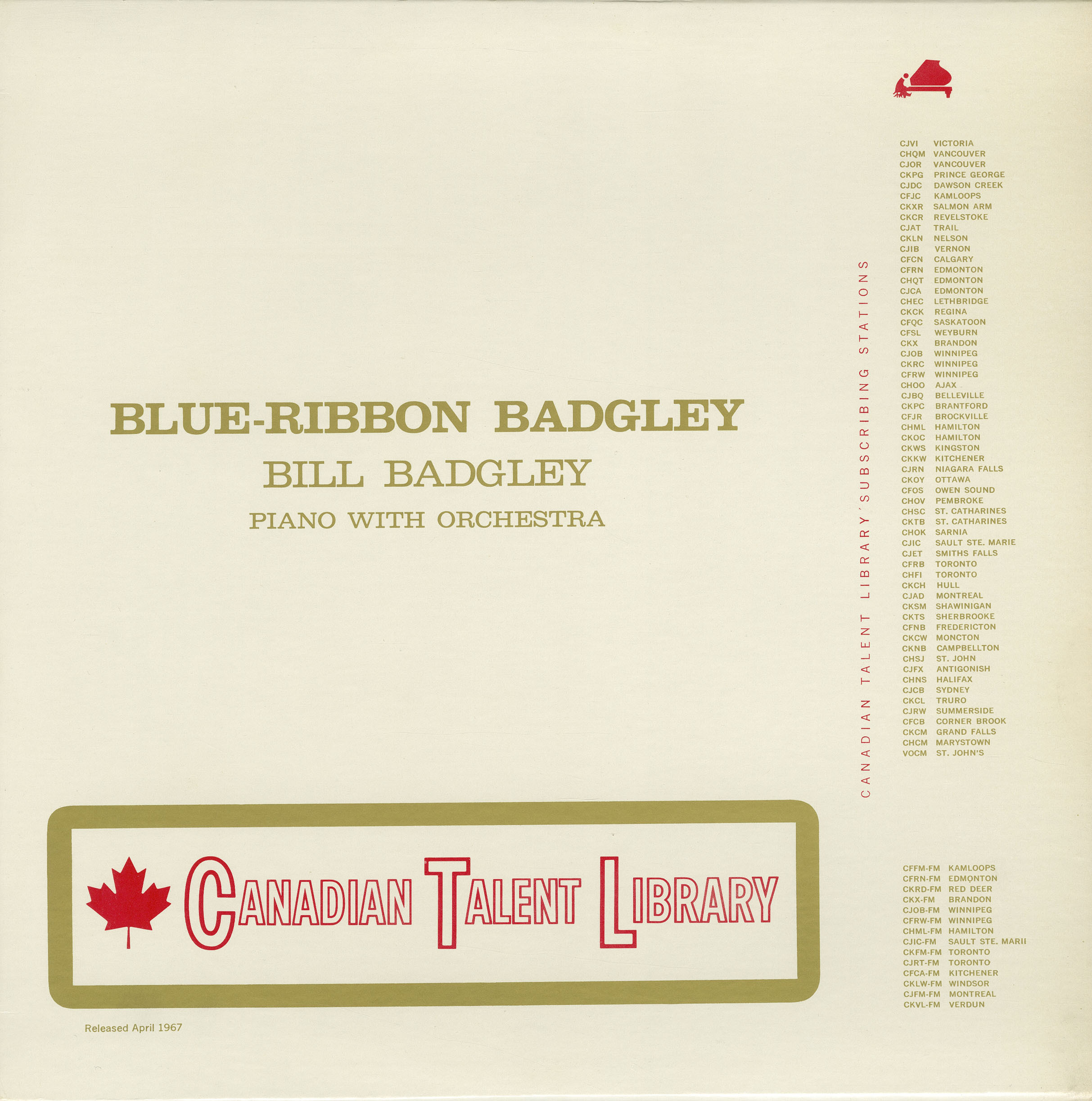Bill Badgley’s first recording for The Canadian Talent Library was so enthusiastically acclaimed by broadcasters and listeners alike, that this second disc was a surety. Had Bill pursued his first-chosen career as a radio announcer, probably neither of these pleasure-giving platters would have been produced, and Canada would have had one less accomplished performing artist to offer the world. However, after disc jockey and newscaster stints in Sudbury, Guelph, St. Catharines and Sarnia, Badgley embarked on a teaching career that took him to Guelph, Coburg and Toronto as a music supervisor. Following engagements at the Hart House and Crest Theatre, he decided to exchange his professional pursuits for a piano keyboard and a professional role as a performer.