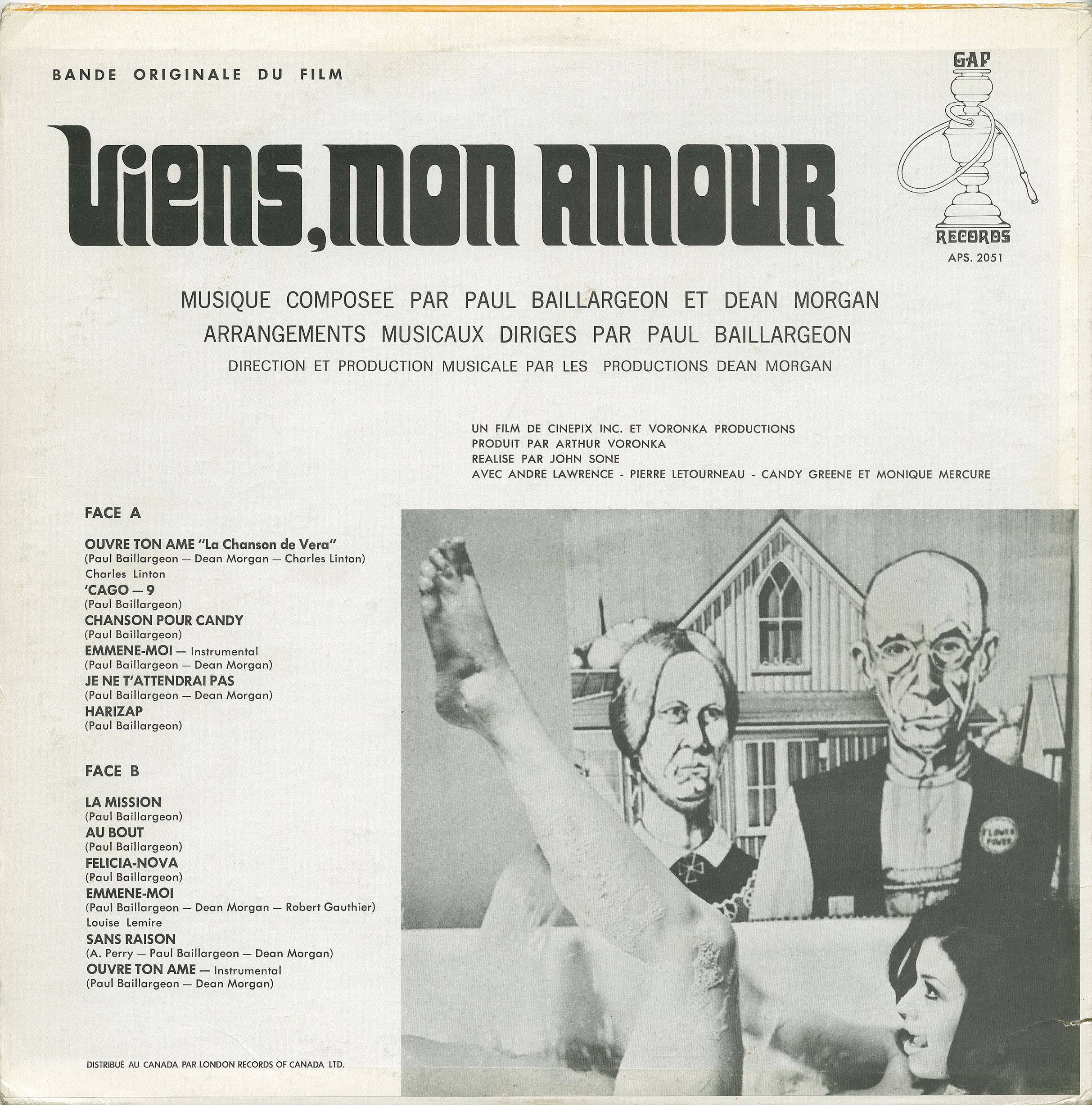 Trésor National inaugure son catalogue avec la réédition sur vinyle noir 180g de la cultissime bande sonore du film de fesses de 1970 “Viens, mon amour”, composée par Paul Baillargeon ("Soleil" de Jean-Pierre Ferland; séries télévisées de Star Trek) et Dean Morgan.