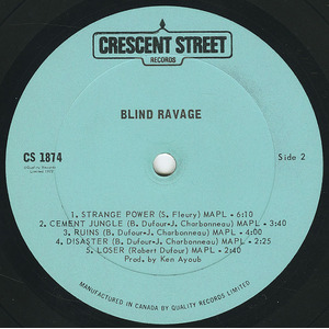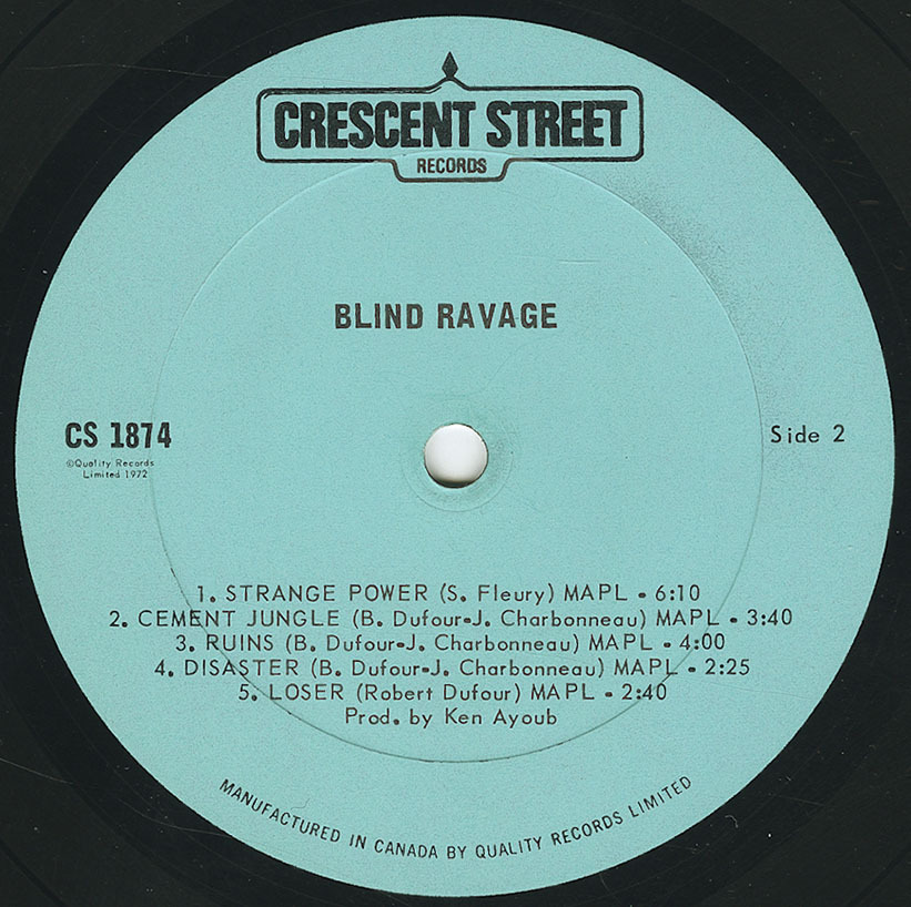In 1971, the band recorded and released their only album, Blind Ravage, on the Crescent Street label. Produced by Ken Ayoub, the LP featured mostly original material, showcasing the band’s heavy riffs, driving rhythms, and gritty organ work. The Beatles' "Birthday" was the only cover on the album. The single “Loser” backed with “My Life” was also released, but despite the group’s efforts and strong live presence, the album didn’t achieve mainstream commercial success at the time.