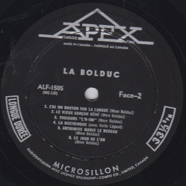 Through the generosity of fellow musicians, Mary Bolduc quickly learned her trade and began to compose melodies. Radio broadcasts spread her reputation. The budding author-composer had never dared dream of a career when, in 1929, the head of Starr records offered her a contract for five 78" records.