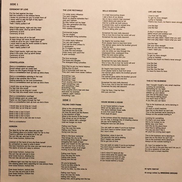 After the release of the EP, bassist Jonathan Strayer quit and the band effectively disbanded. However, Wardman and Shirreff continued writing material in Wardman's basement along with bassist Gary Quinn and before long, the remainder of Breeding Ground was recruited back to the band for the 1986 line-up of Shirreff, Gladish, Quinn, Hunter and Wardman.