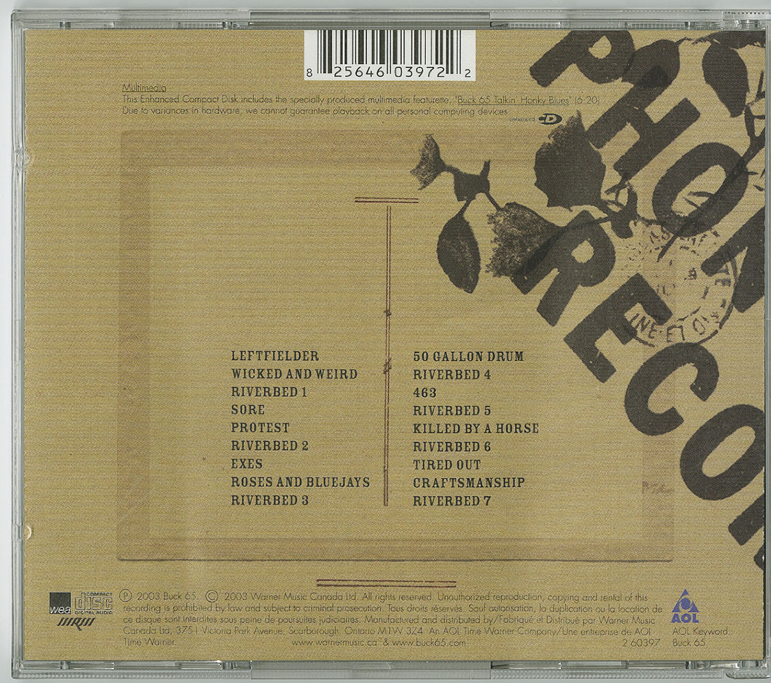 I also think that on this record, the music and lyrics compliment one another better than on any of my other records. In the past this was always like an arranged and loveless marriage - a setup. What makes this harmony especially interesting is that on songs like 'Wicked and Weird' or '463' or 'Killed By A Horse', the combinations of sounds are so off-the-wall. There are more than a few moments of borderline blasphemy in terms of musical fusions (I'm making it sound disgusting). Kraftwerk meets ZZ Top, for example? It shouldn't work, but I feel that it does. 'Roses and Bluejays' is a freak of nature, but it's so seamless that it doesn't matter. It's a nice song about my dad. And Dale Murray's steel playing on this song (and all over the record) is so beautiful, it's enough to make you weep.