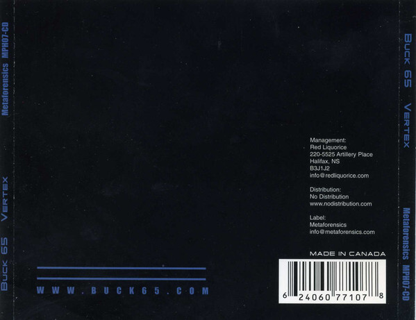 Vertex is an album from Halifax, Nova Scotia hip hop artist Richard Terfry, who performs as Buck 65. The album was originally released on cassette and was 90 minutes long, containing 20 more minutes of mostly instrumental music that was left off of the Warner version.