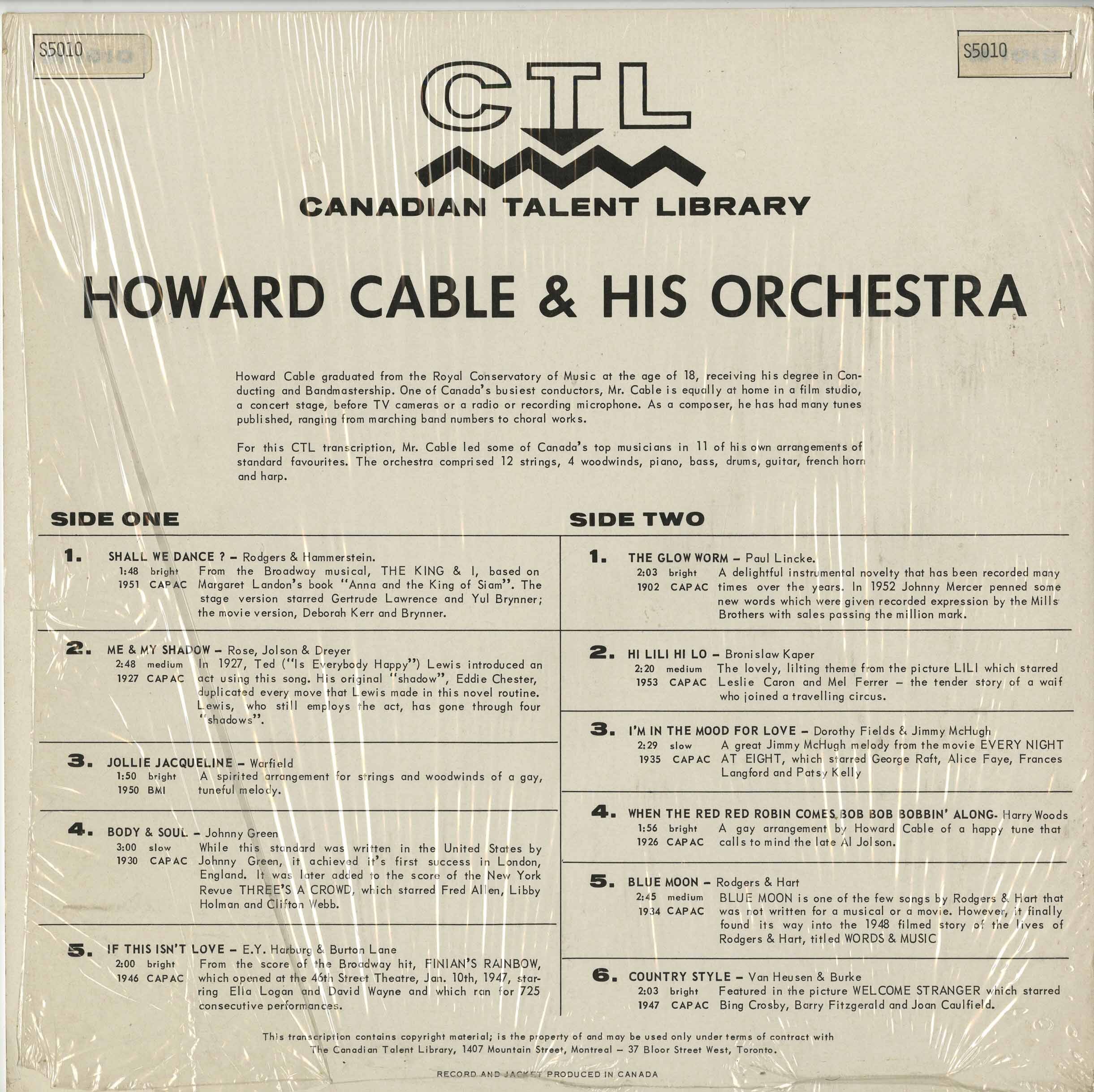 Label: Canadian Talent Library CTL 5010, Canadian Talent Library CTL 1010
