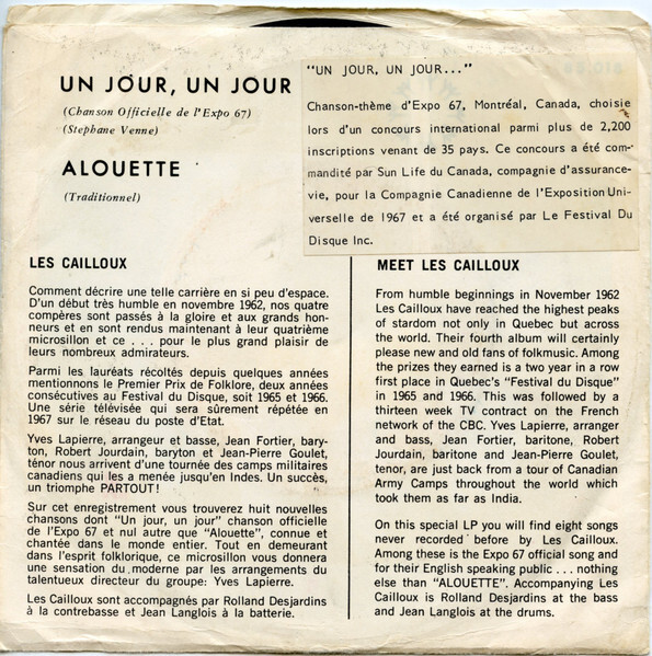 Cailloux - Un Jour, Un Jour (thème d'Expo 67) b/w Alouette (picture sleeve)