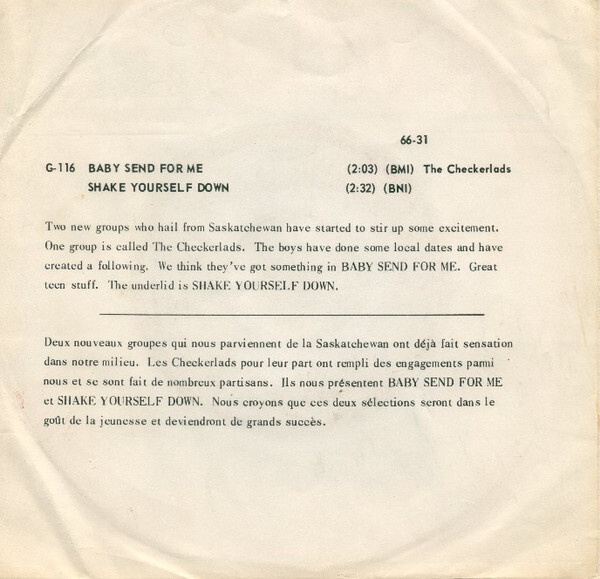 Checkerlads - Baby Send For Me b/w Shake Yourself Down (picture sleeve)