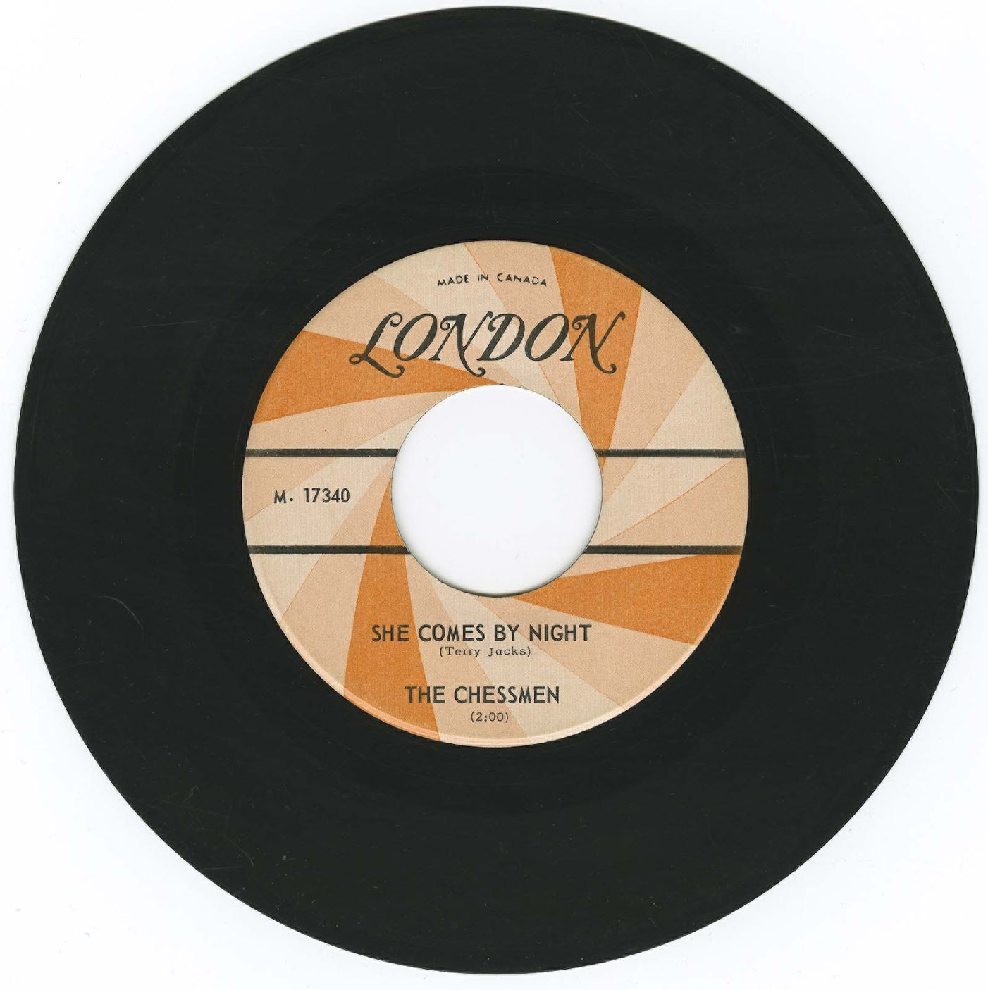 The Chessmen formed in Vancouver B.C. in 1963 and first released an instrumental 45 of "Meadowlands" and "Mustang" on London Records. Their follow up single featured Terry Jacks on Vocals singing "The Way You Fell" and "She Comes By Night" which reached #4 on the local charts. Members Terry Jacks on Rhythm Guitar and Guy Sobell on Lead Guitar were joined by several different bassists and drummers during the band's existance including members Bill Lockie, Al Wiertz, Miles Kingan, Larry Borisoff, Kenny Moore and Duris Maxwell. The Band travelled to Nashville in 1965 with a newly added member Bruce Peterson, who played electric 'Chordovox' accordion. In Nashville they recorded two singles for Mercury records before their break up in July 1966.
