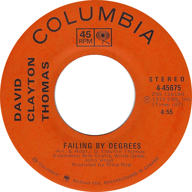 Clayton-Thomas, David - Yesterday's Music b/w Failing by Degrees
