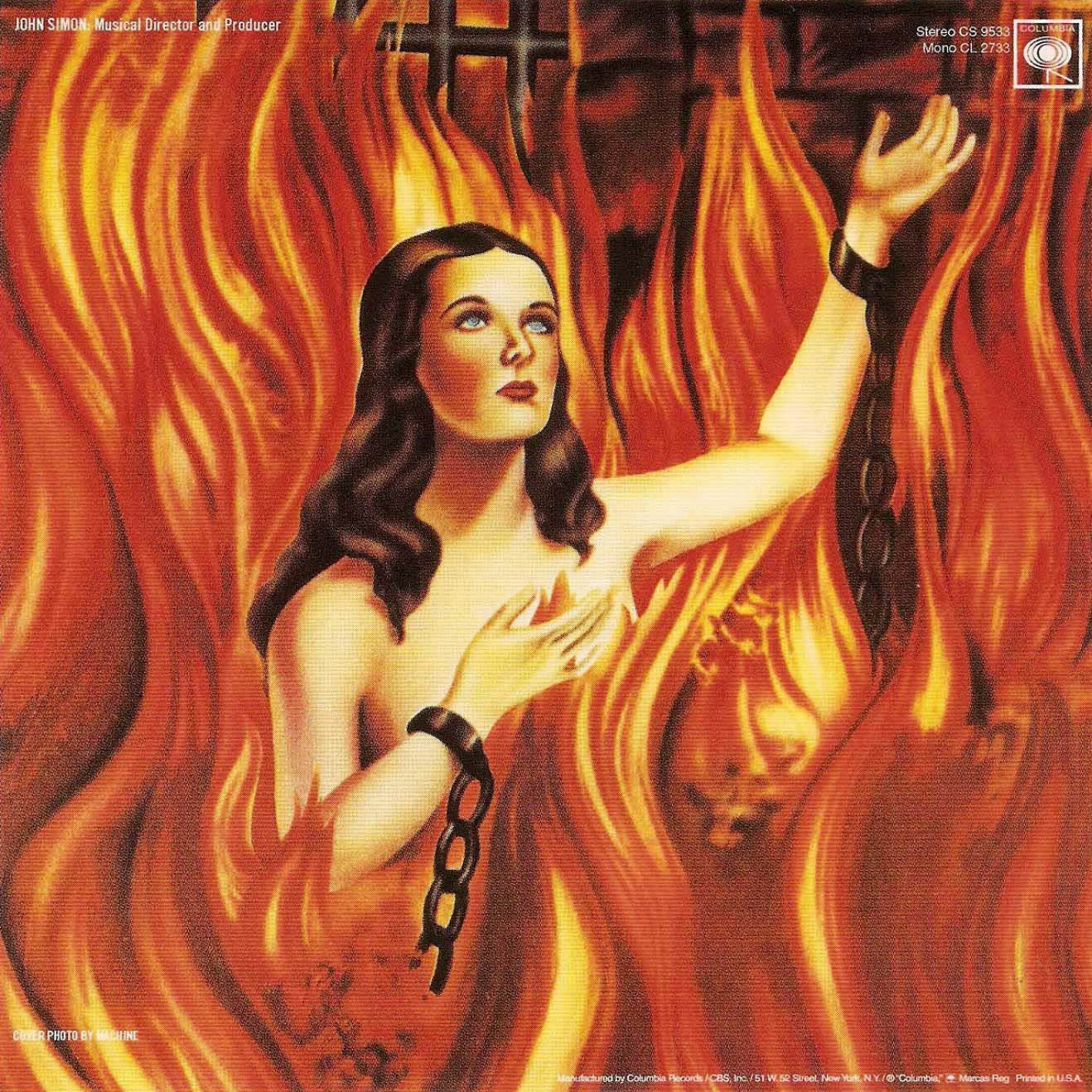 Even the album art for Songs of Leonard Cohen told a compelling story, much more dramatically, of course, in the days of vinyl albums. Evidently based on the image of a saint on a Mexican postcard that Cohen had found, the woman on the album’s back cover is apparently naked, enchained and engulfed in flames. Yet she looks calm and confident, her eyes raised upwards to the sky, her goal beyond. The fire could be the flames of martyrdom, or of passion, or both. The chains may well be symbolic of the prison house of the body and the material world, in the process of being burned off in purifying fire, so the spirit of this Joan of Arc can escape to a freer place.