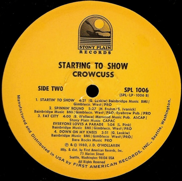 I had met the group Crowcuss out of Winnipeg which included two former members of The Guess Who, Bill Wallace and Greg Leskiw in Edmonton in 1976. They had been formed from remnants of the groups Mood Jga Jga which included Greg and Hermann Fruhm and Musical Odyssey which included Marc and Larry. I had been knocked out by their sound. In those days, in the bars, it was somewhat unusual to see a band playing mostly their own material but this was one of them. I sat in on a couple of their gigs in Calgary during the latter days of my tenure at Sound One. In October '78, Hermann gave me a call asking if I'd like to audition for the guitar chair which Greg had vacated. They had been playing as a four piece unit without guitar and had signed with and recorded the album "Crowcuss" for Holger Peterson's Stony Plain Records. I jumped at the chance and was accepted into the band in late '78.