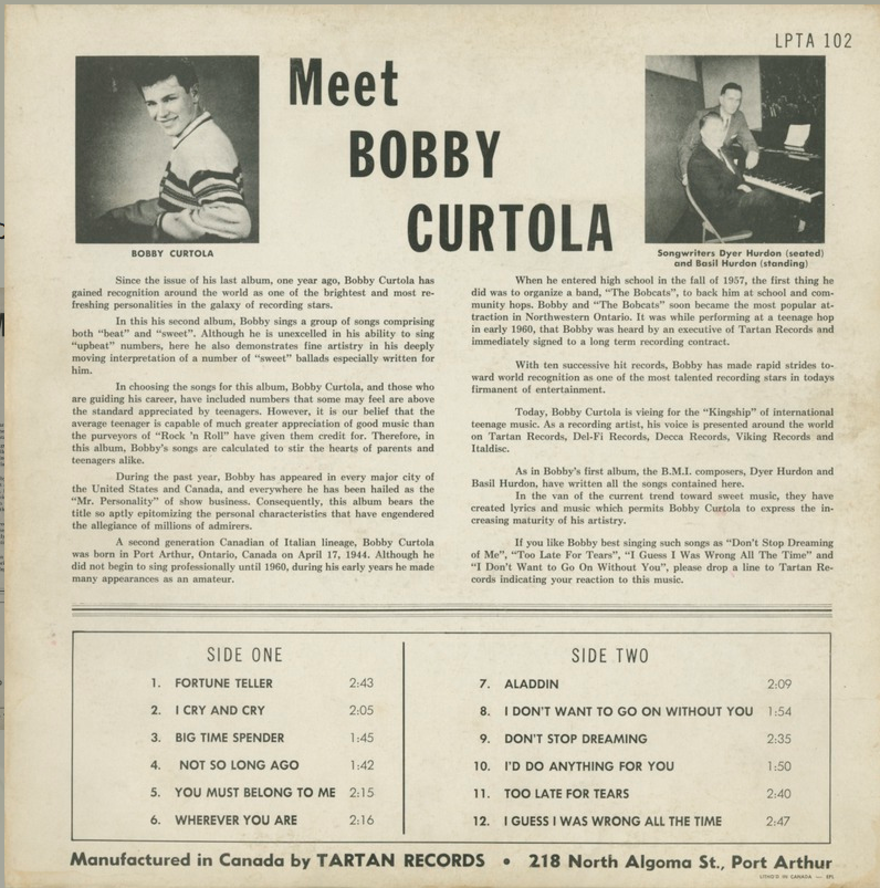 Curtola’s chart run was remarkable: 25 gold singles and 12 gold albums through the 1960s, capped by the 1966 RPM Award for Best Male Vocalist. He also pioneered the model of the Canadian touring pop star, crisscrossing the country at a time when most acts still looked abroad to make their careers.