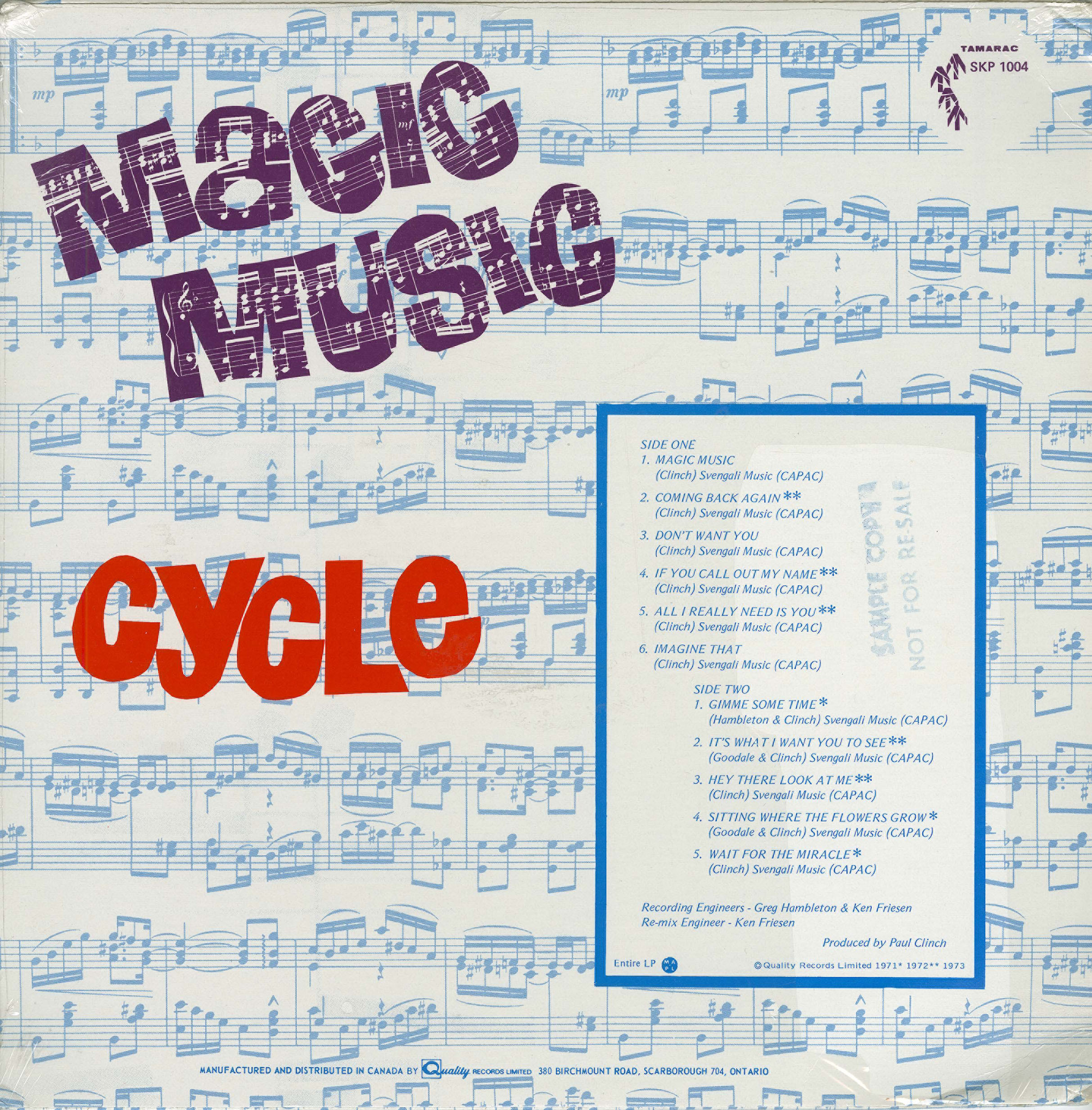 In 1971 The Cycle returned with “Wait for the Miracle,” paired with an edited “God,” nudging into the RPM singles chart and drawing enough attention to secure Buddah distribution abroad. A follow-up, “Gimme Some Time” backed with “Sitting Where the Flowers Grow,” kept them on playlists while the musicians doubled as in-demand session players—evidence that, hit or no hit, their parts and arrangements were everywhere.