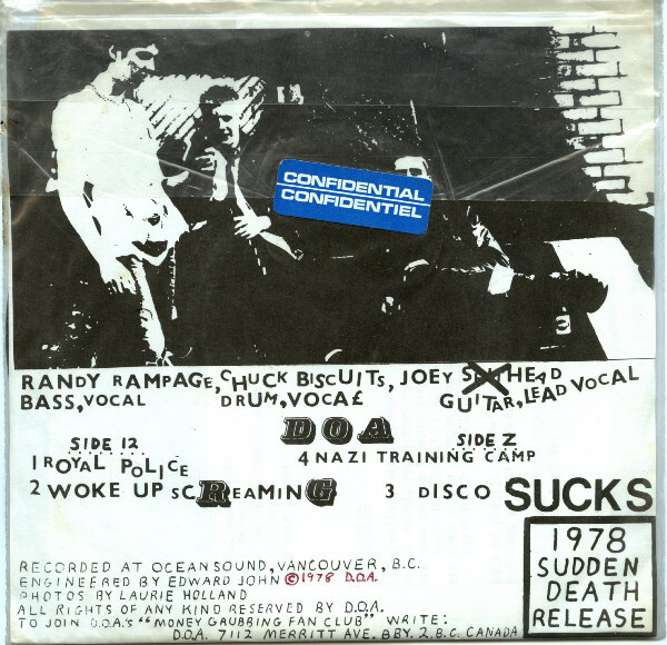 D.O.A. - Disco Sucks (EP) (1st press "Imported From The Great Canada Wastelanders" on picture sleeve)
