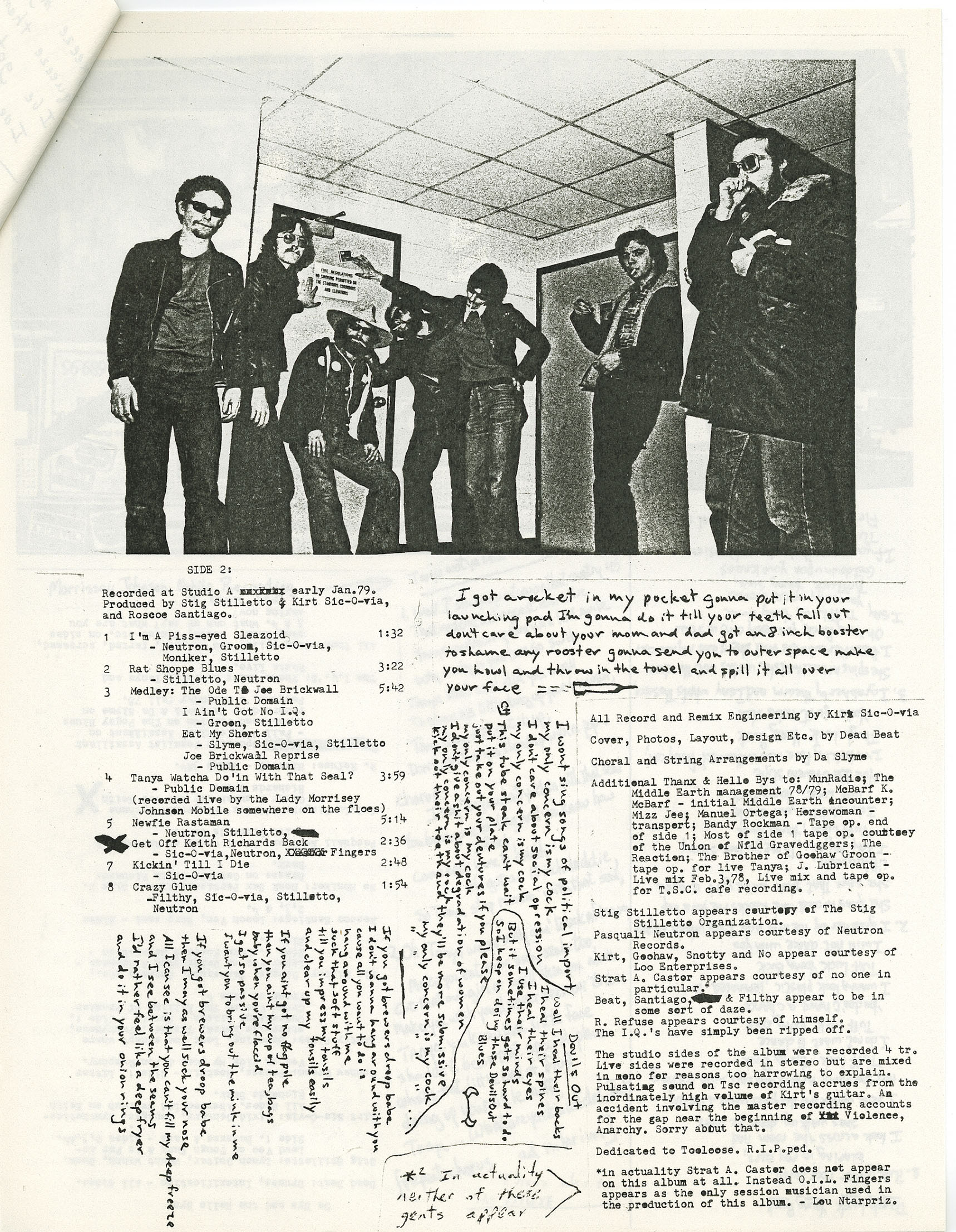 Apparently only 10 copies of this album were distributed outside of Newfoundland. It is not known how many were distributed within Newfoundland, but it is likely that less than 200 were made in total, and only a handful have survived the drunken Piss-eyed sleazoid beerfests.