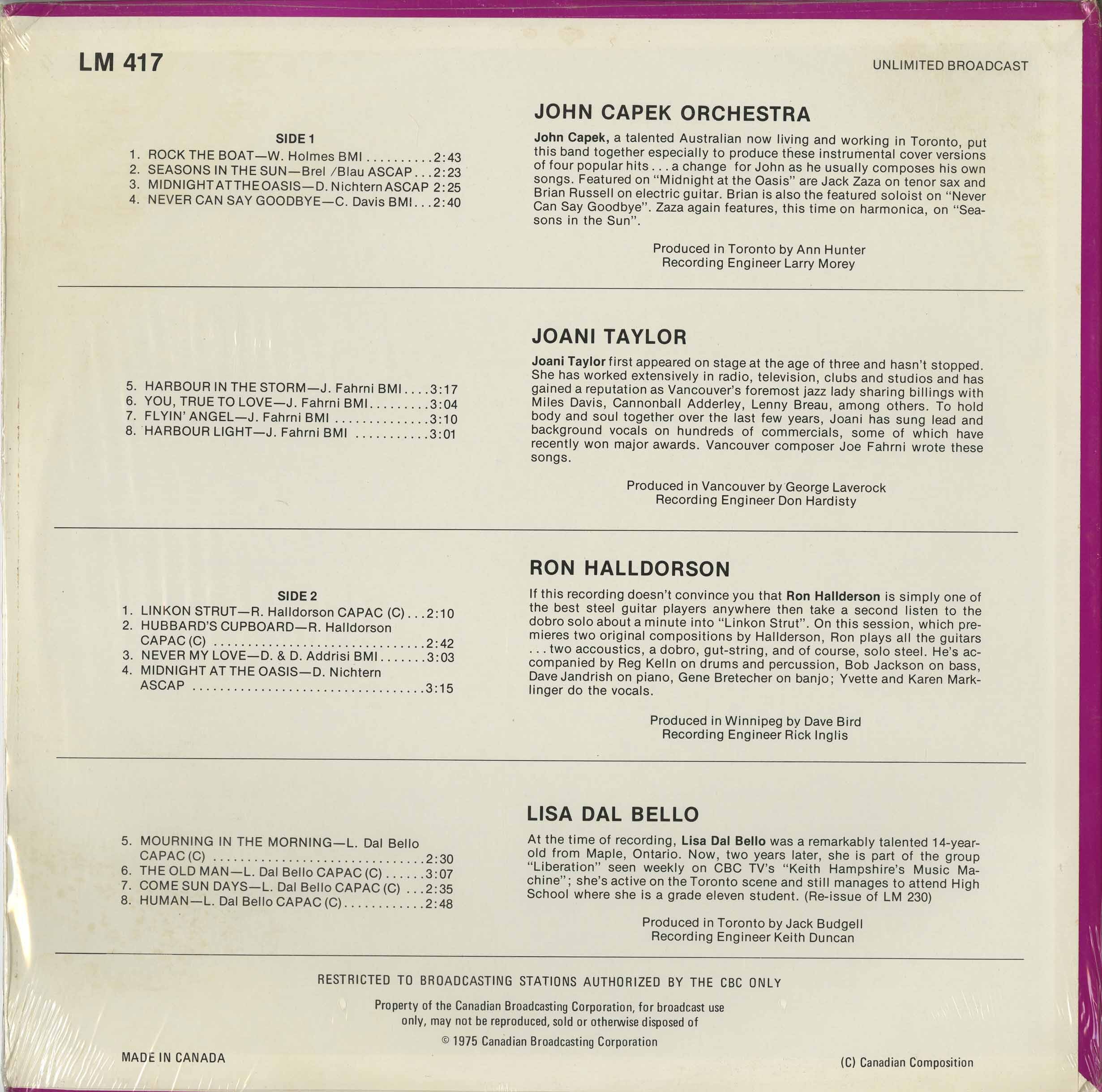 Label: CBC Radio Canada LM 417