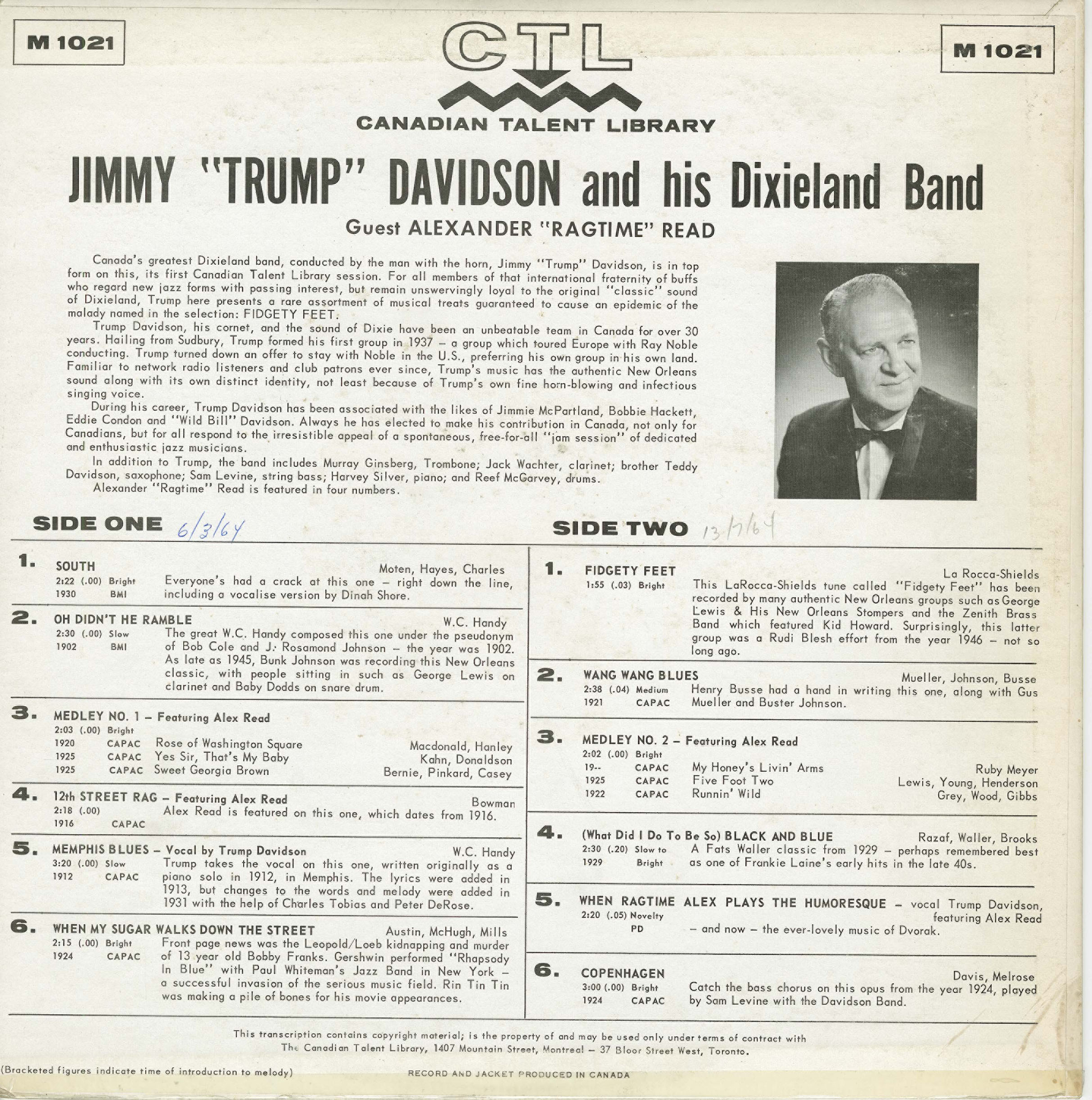Label: Canadian Talent Library CTL 5021, Canadian Talent Library CTL 1021