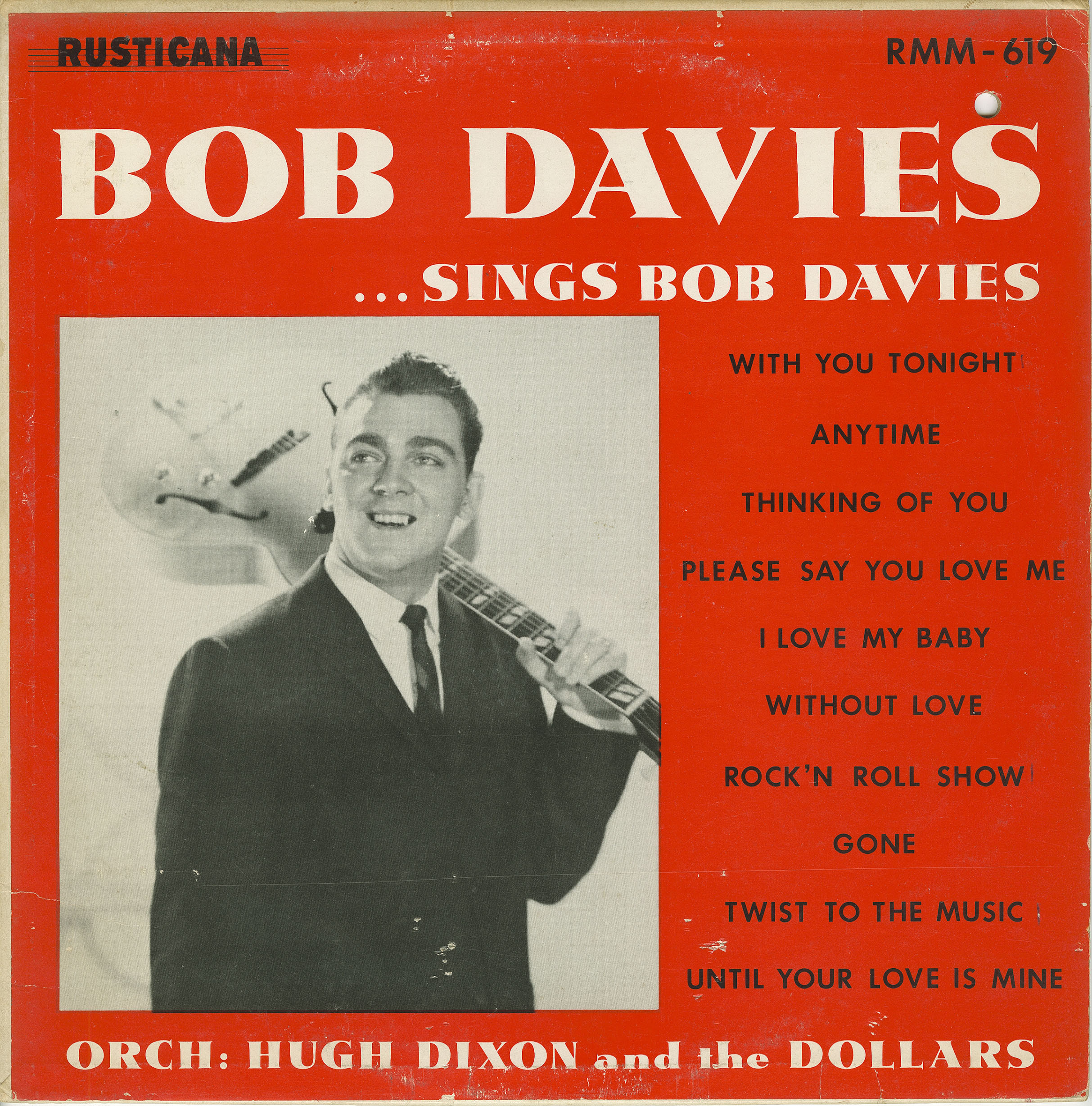 Through Dixon, Davies met Roger Miron, who ran Rusticana and Click Records. His Bob Davies sings Bob Davies LP appeared on Rusticana in 1963. For this release, Danny Smith's brother Billy took over on drums and Davies's old band mate Rick Munro joined The Dollars on bass, replacing Robertson. In spite of the late recording date, the songs on this album are surprisingly good rockers. Cashbox reviewed "Rock'n Roll Show" and "With You Tonight" (album tracks issued as a single on Click), giving both cuts the nod with a B+ (their highest grade). London Records expressed some interest in releasing this record in the States, but, unfortunately, Miron apparently never pursued it. It was, however, released on that label in the United Kingdom. Other tunes off the album also made Montreal radio station CKGM's Super Six charts. During this time, Davies continued to play clubs around Québec, including Le Baril d'Huitres, Le Bal Tabarin and Chez êmile in Québec City, as well as Ottawa and Toronto, also doing the occasional TV show. In 1964, Davies re-formed The Bobsmiths. He and Danny Smith had performed briefly under that name for about a year, in 1961 and 1962. The reunited duo toured a lot, doing Beatles take-offs and hockey and boxing skits, as well as playing Davies' compositions and hits of the day. They were extremely popular in clubs, so Davies assembled an album with songs culled from his Bob Davies sings Bob Davies LP and some new material he had written. This "new" album was also issued on Rusticana and titled, with a tip of the hat to the mop tops, Meet The Bobsmiths. The new songs were cut with backing provided by The Dollars. Davies and Smith moved to Ontario in the late sixties and carried on with their club work in much the same fashion. They put out an album in 1971 - the same year they split. Recorded live at The Derby (a club in Toronto) it is an accurate reflection of what their shows were like then. After that, Davies continued performing on his own. In 1977, he took a year off to recuperate from the toll taken by his many years on the club circuit. These days he is still entertaining, occasionally playing at charity events and sometimes in lounges, on the weekend.