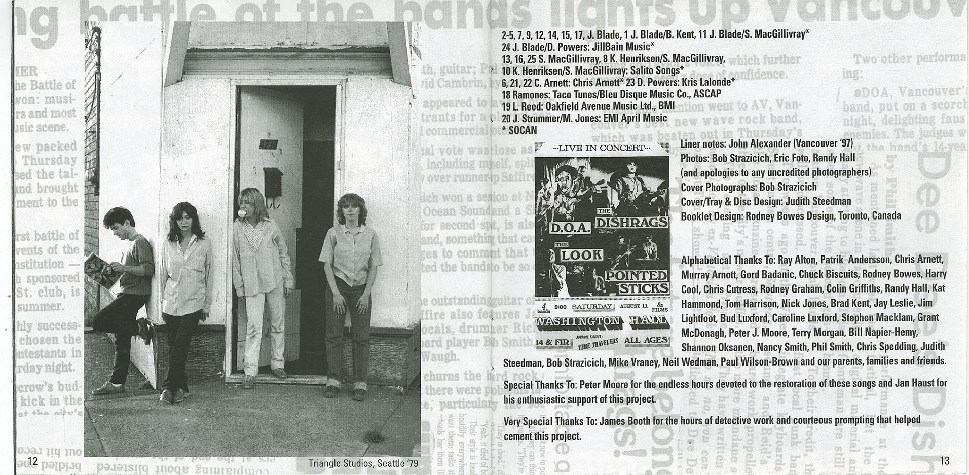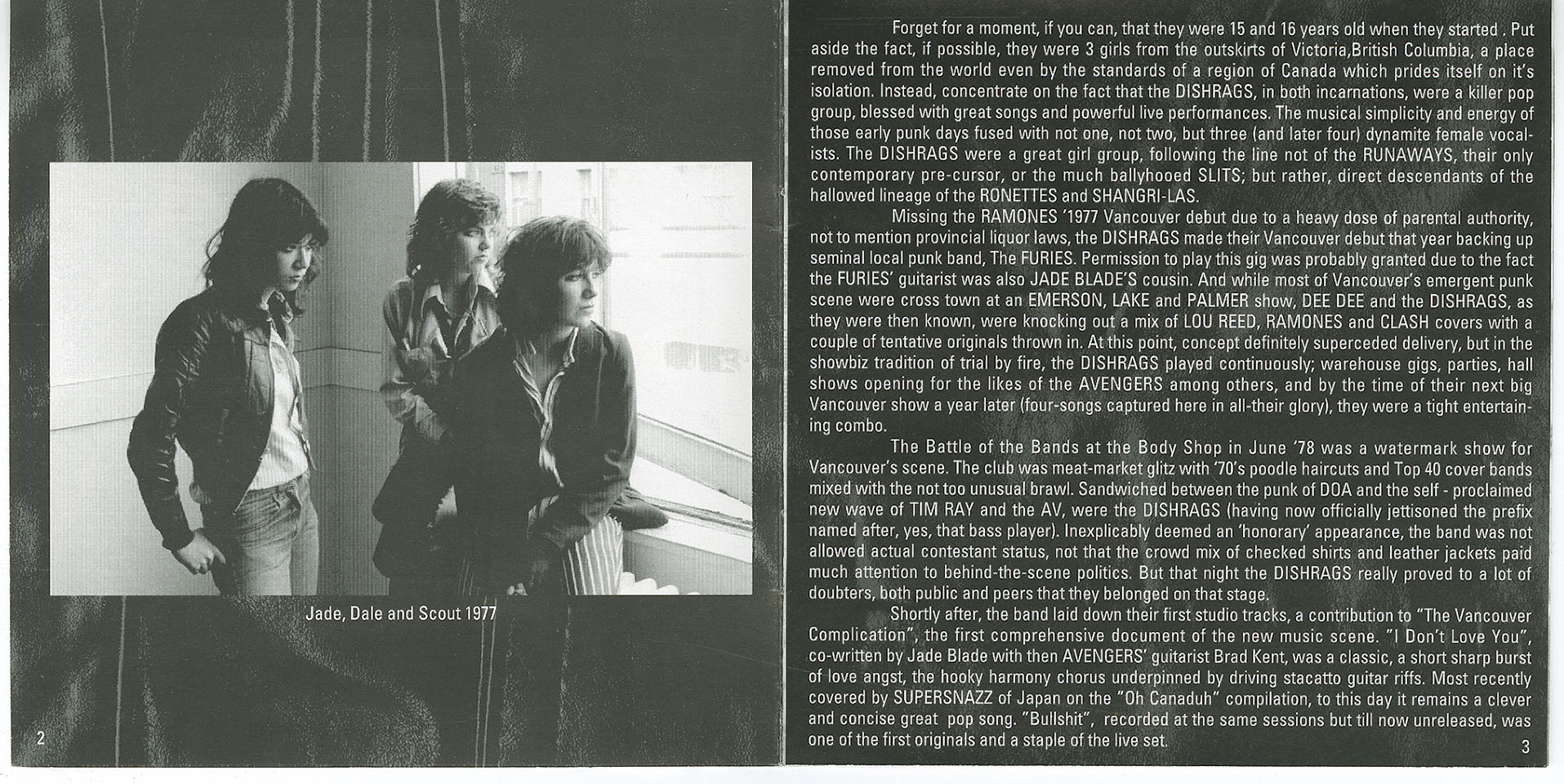 Still in their mid-teens when they began playing out, the Dishrags were quickly swept into Vancouver’s growing punk subculture. After missing the Ramones’ 1977 Vancouver debut due to underage restrictions, the Dishrags made their own local debut supporting The Furies — a slot they likely secured through familial connection, as Jade Blade was cousin to the Furies’ guitarist. At that first show, Dee Dee and the Dishrags (as they were briefly known) cranked out a set of Lou Reed, Clash, and Ramones covers, bolstered by a few rough originals. Despite the band’s youth and inexperience, their passion and authenticity were evident — and from that point on, they never stopped performing. From warehouse gigs to battle-of-the-bands slots, they gradually developed a reputation for tight, high-energy sets and sharp songwriting.