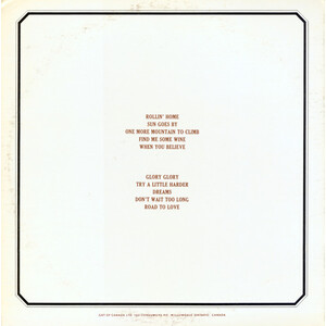Written by Doug Riley ('Rollin' Home', 'One More Mountain To Climb', 'Find Me Some Wine', 'Try a Little Harder', 'Don't Wait Too Long'); Steve Kennedy ('Sun Goes By', 'When You Believe', 'Road To Love'); Neil Sedaka and Howard Greenfield ('One More Mountain To Climb'); Wingfat ('Find Me Some Wine'); Brian Russell ('Glory Glory'); Brenda Gordon ('Dreams')