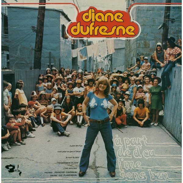 Diane Dufresene's recording career began with an obscure single in 1970, and her first real break came with her recording on the erotic underground soundtrack l'Intiation in 1969......but Quebec's most eclectic Diva was really born in 1972 with her total metamorphosis into a flamboyant and theatrical persona which arrived coincident with the release of her first LP Tiens-Toé Ben J'arrive (her first solo collaboration with Francois Cousineau).