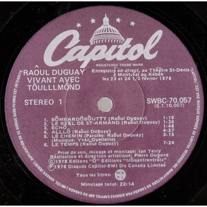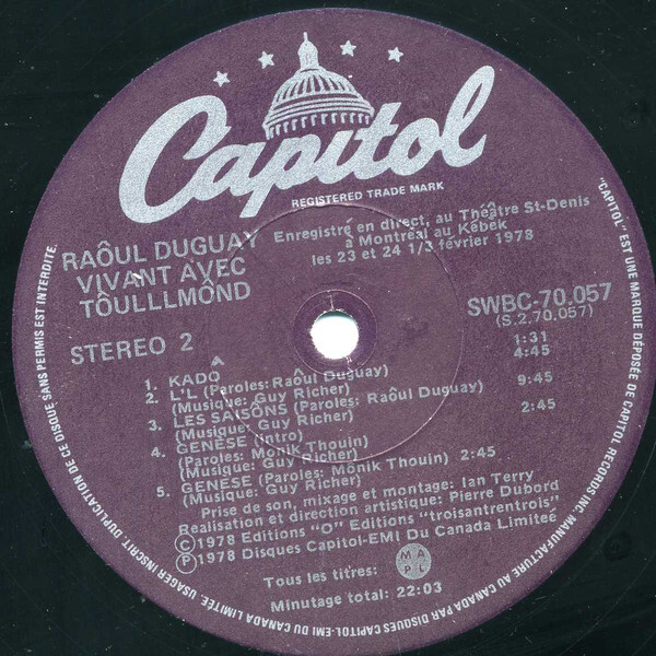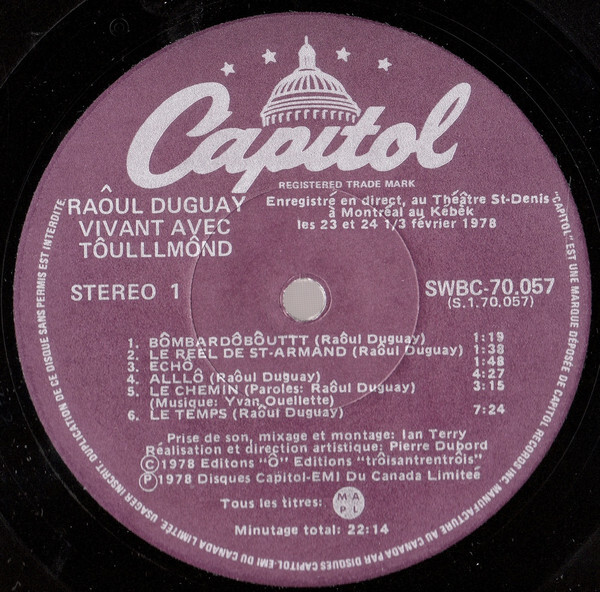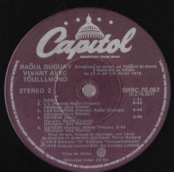 Duguay, Raôul - Vivant Avec Tôulllmônd (Live)
