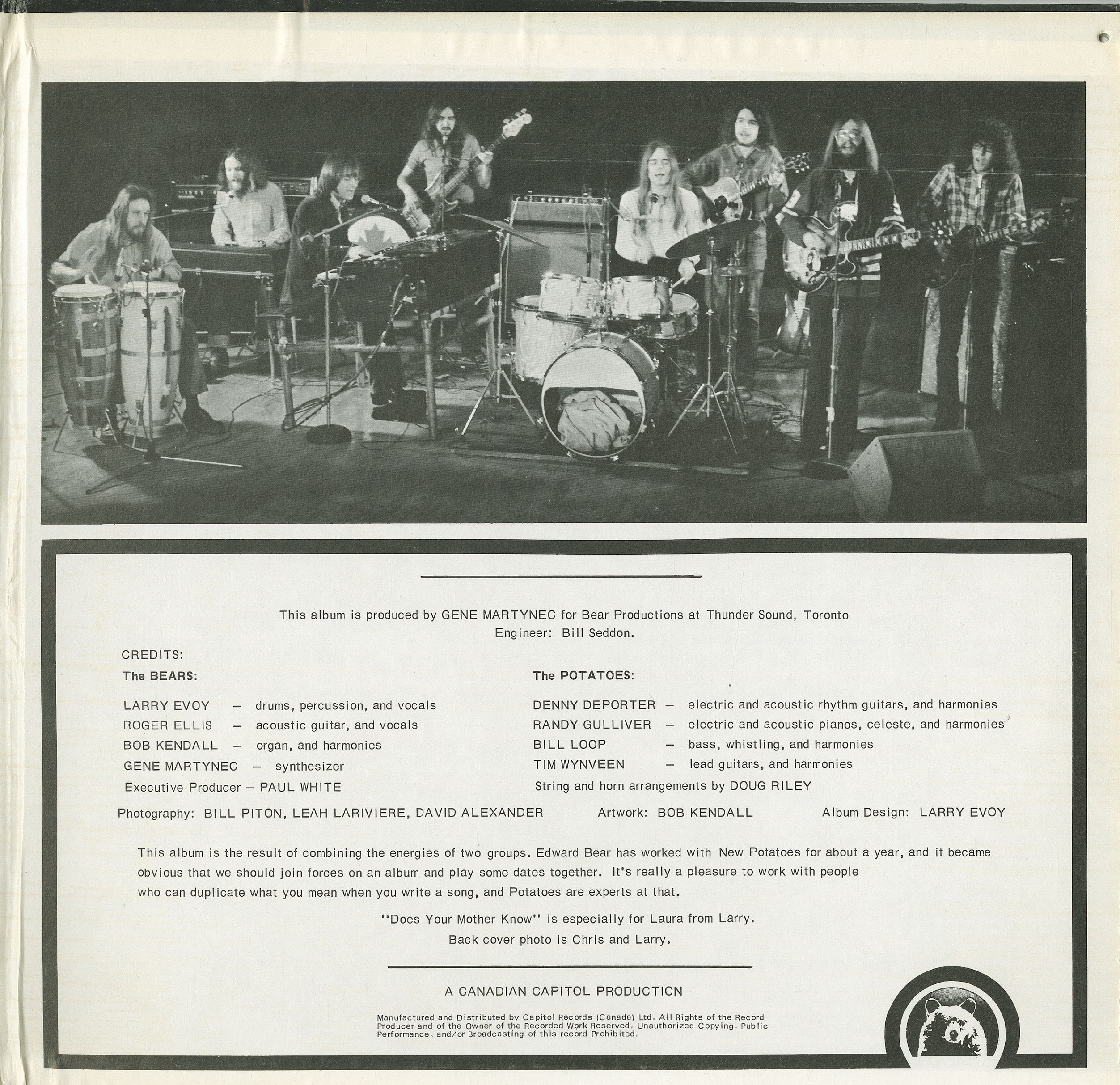 In the mid-60’s Larry Evoy and Paul Weldon were jamming in basements and experimenting with blues rock tunes. In 1966 bass player Craig Hemmings and drummer Dave Brown formed a band with Evoy and Weldon. They got guitarist Danny Marks to join them after he answered an ad. After a year they settled on the name The Edward Bear Revue. They got the name from A.A. Milne’s children’s book, Winnie The Pooh, whose central character has the proper name of Edward Bear. In time the band shortened their name to Edward Bear. The band originally was a blues and rock band and opened in 1968 for a Toronto concert with Led Zeppelin as the headliner.