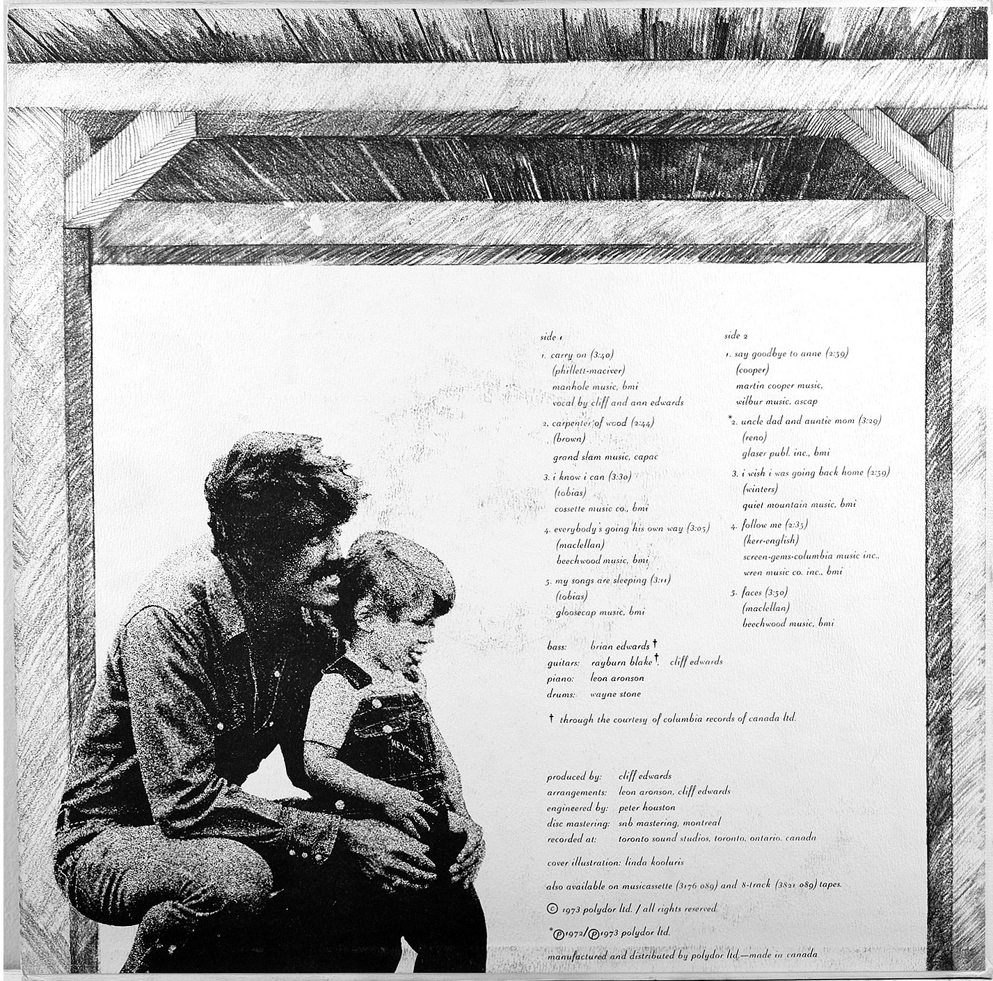The production—handled by Edwards himself and engineered by Peter Houston at Toronto Sound Studios—is intimate without being lo-fi, capturing the lived-in quality of the performances. Cover art by Linda Loucks (a charming pencil sketch of Edwards and his son under a timber frame) complements the album’s rustic, homegrown feel.