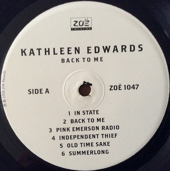 Canadian country singer Kathleen Edwards' sophomore album, Back to Me, begins almost exactly like her 2003 debut, Failer. The lead-off "In State" could be "Six O'Clock News" redux, since both describe the same romantic quandary: What do you do with a lover who's a recalcitrant criminal and whose lawlessness interferes with your relationship? On "Six O'Clock News", the narrator sits by as her lover is gunned down on television, her unborn child left fatherless. But on "In State", the narrator is an active agent in her fate: She turns him in with no illusions and very little compunction, singing, "Maybe 20 years in state will change your mind."